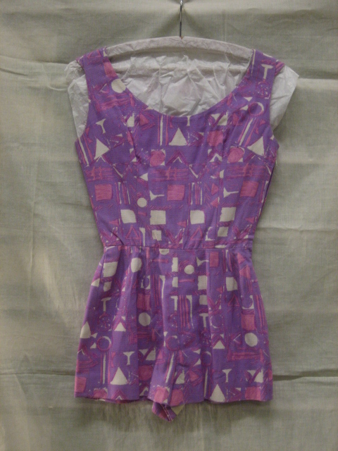 Strandpakje van witte matjesbinding bedrukt in lila/...