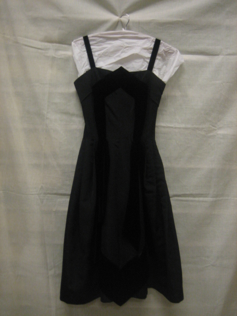 Cocktailjurk van zwarte taftzijde en zijdefluweel, o...