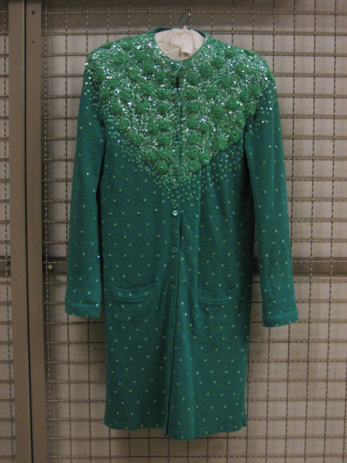 Vest van blauwgroene lamswollen tricot, geborduurd m...