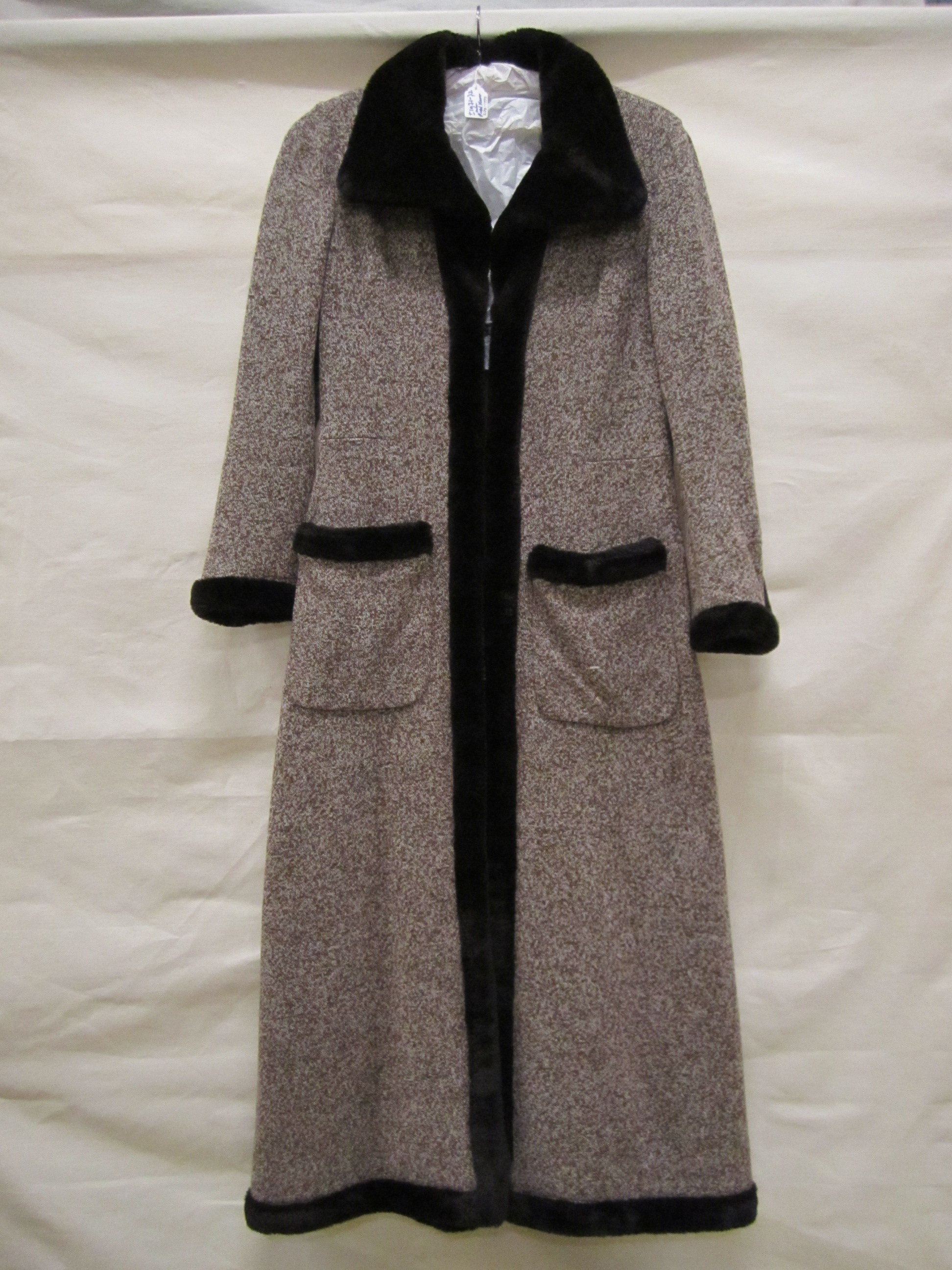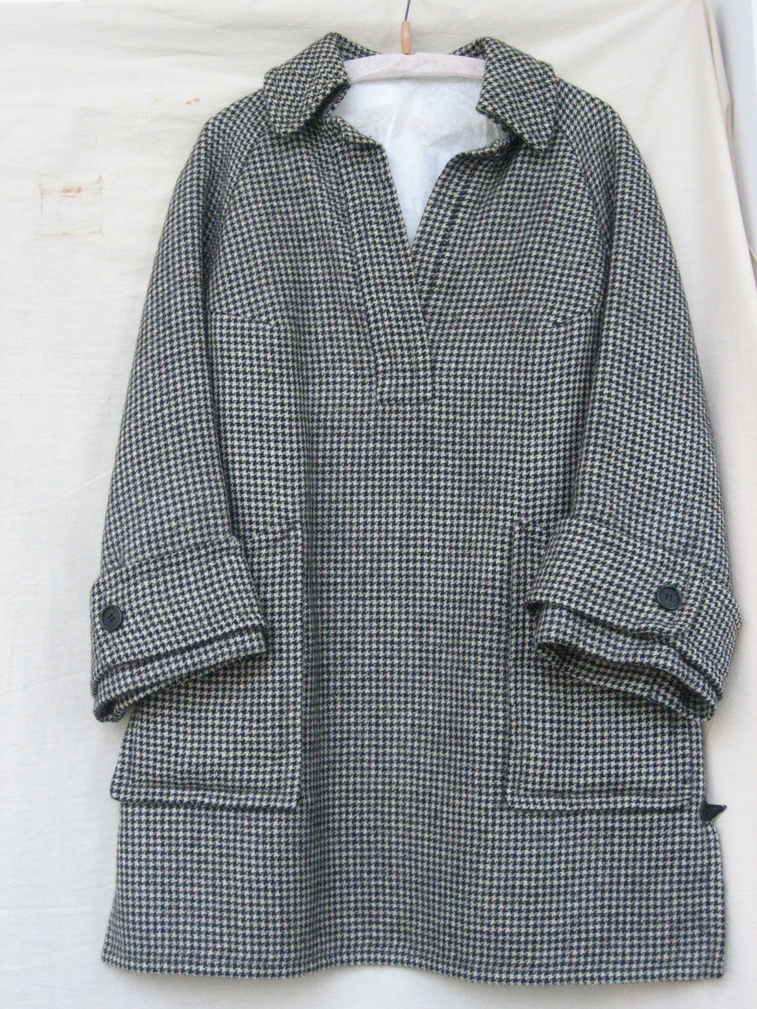 Tuniek van zwart/witte wol geweven in pied-de-poule ...