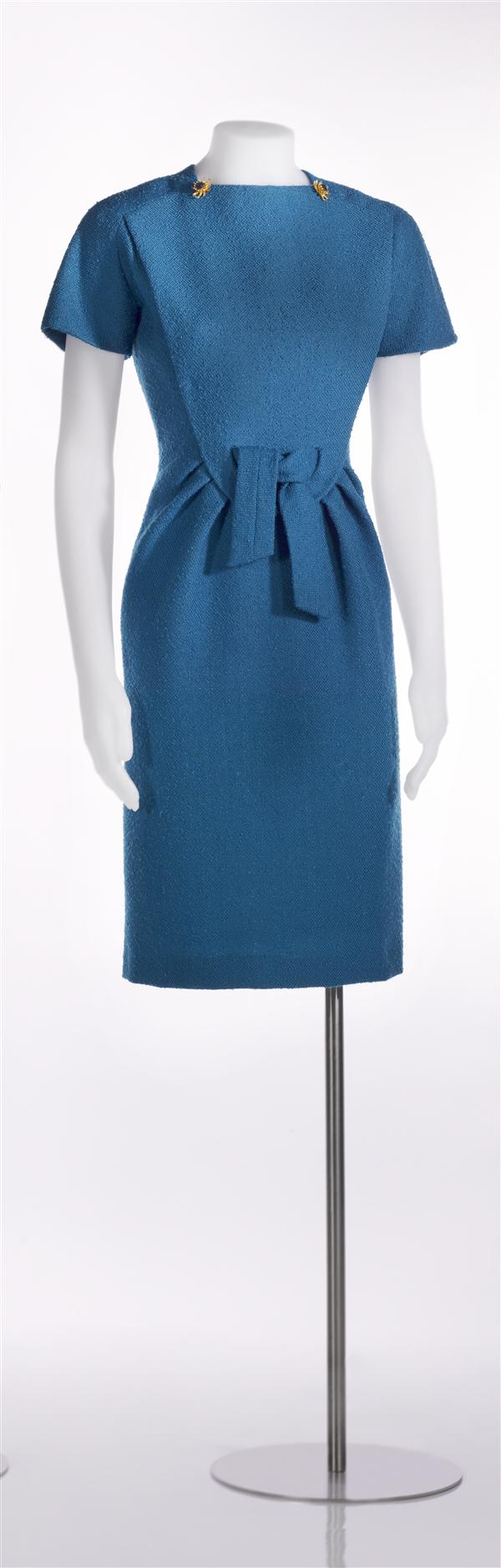 Namiddagjurk van turquoise boucléwol, voorzijde in 2...