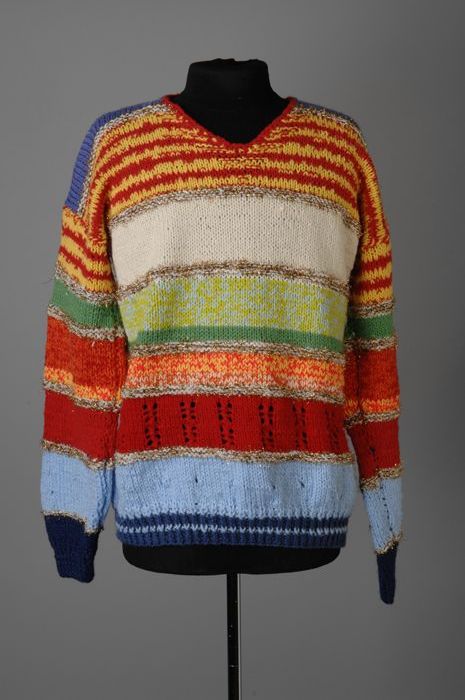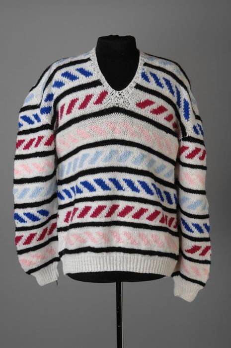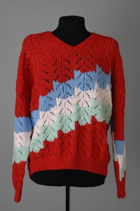 Trui met V-hals en lange mouwen, handmatig gebreid, ...
