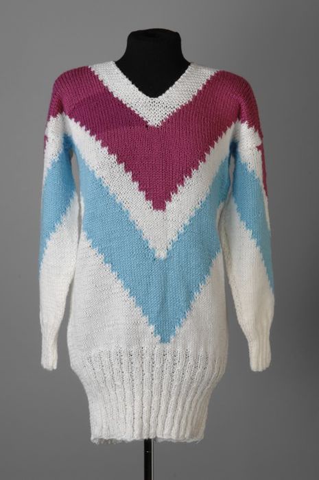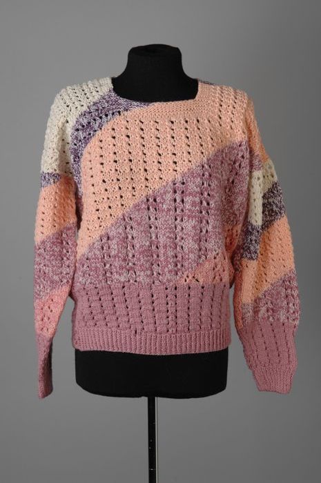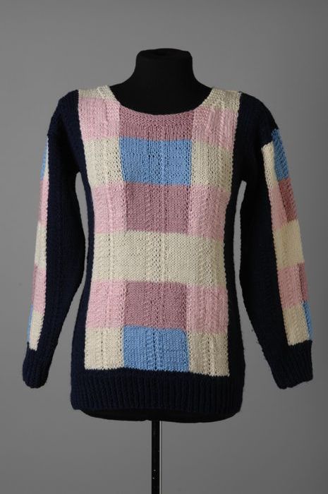 Trui met boothals en lange mouwen, handmatig gebreid...