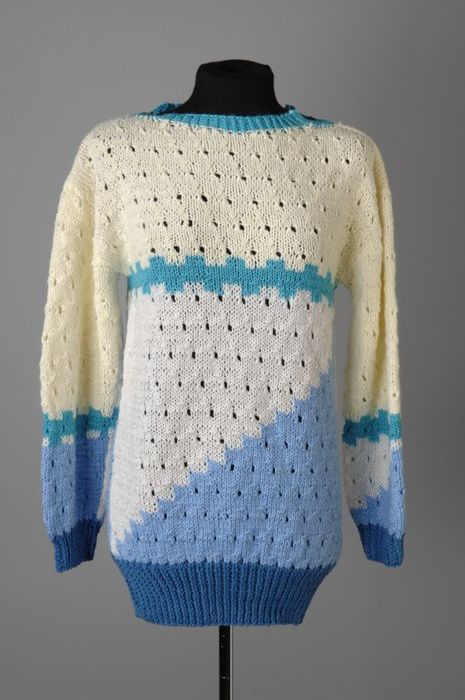 Trui met ronde hals en lange mouwen, handmatig gebre...