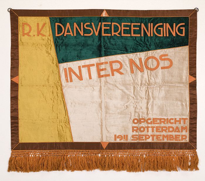 Veelkleurig vaandel van de R.K. Dansvereeniging Inte...