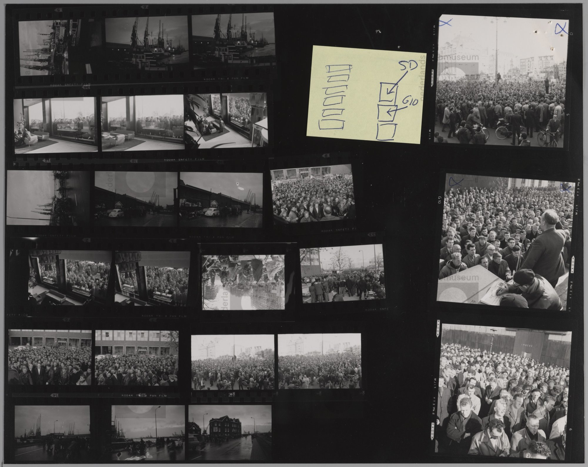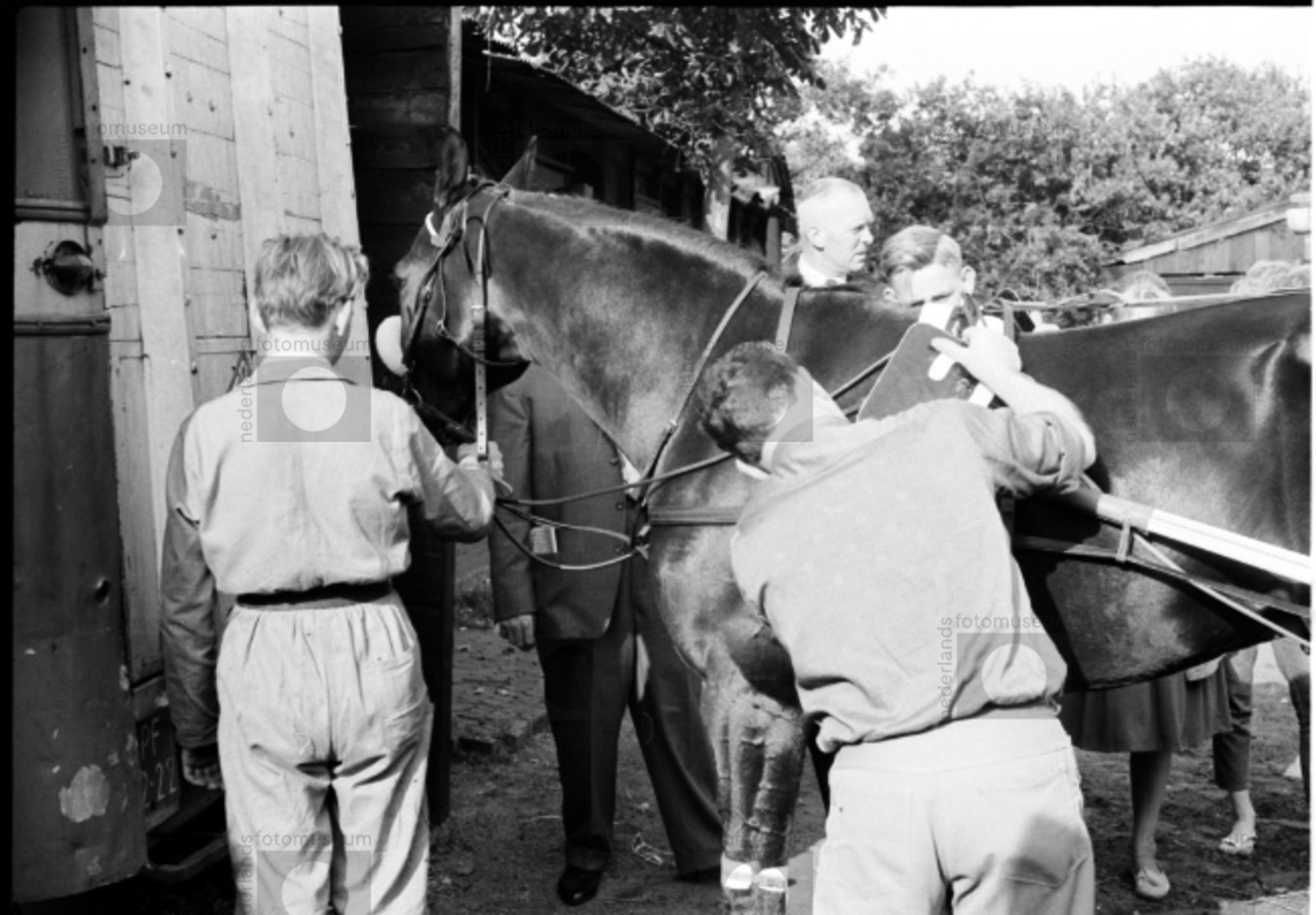 Amsterdam, Hoofdweg. Ouders wuiven hun kinderen uit ...