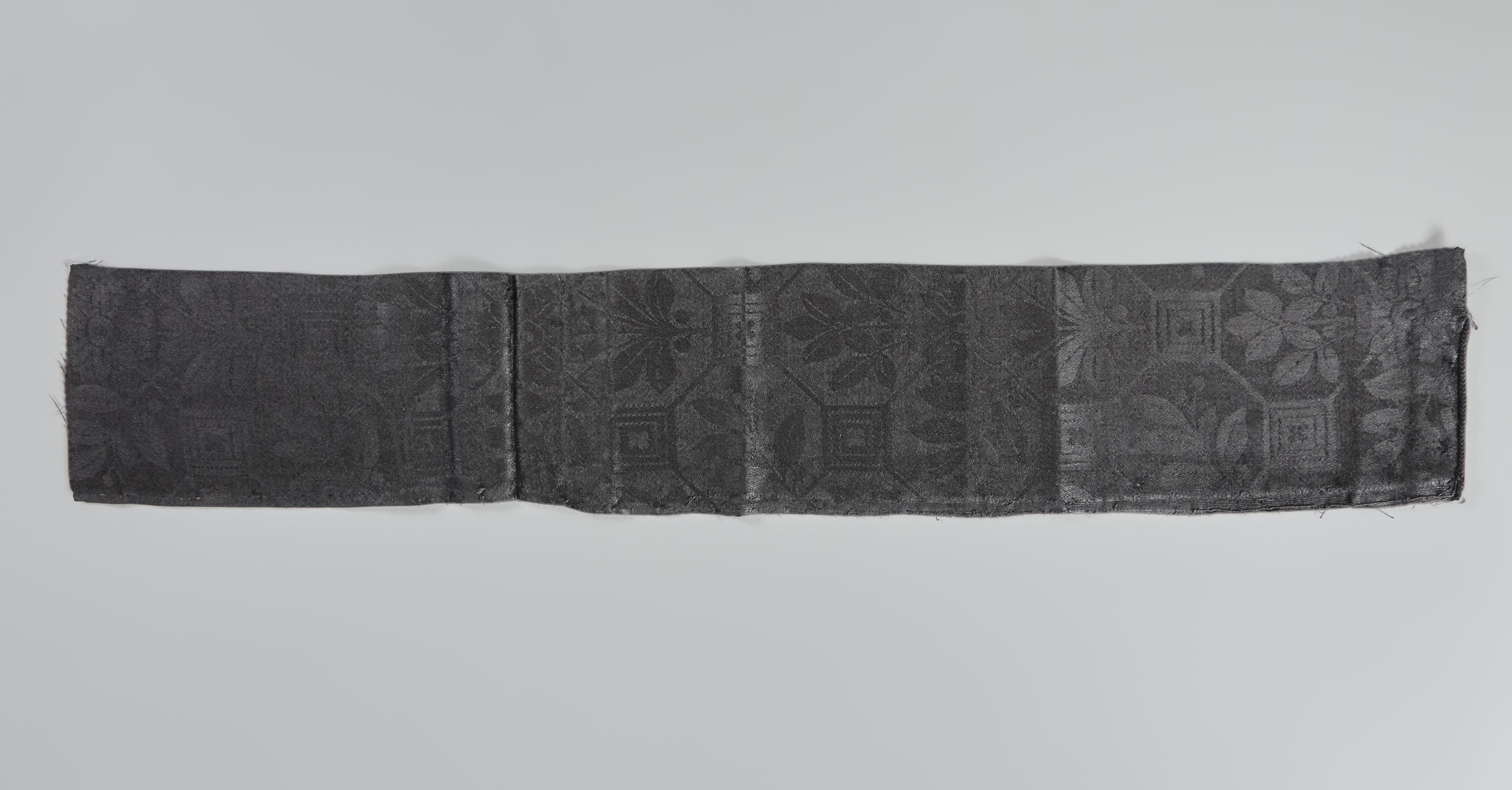 Fragment van rok van zwarte wollen damast (staal (mo...