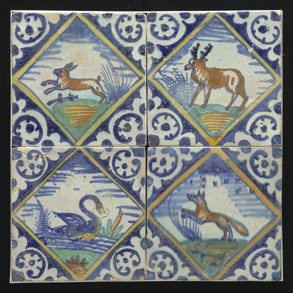 Tegelveld van keramiek, tinglazuur, voorstellende ee...