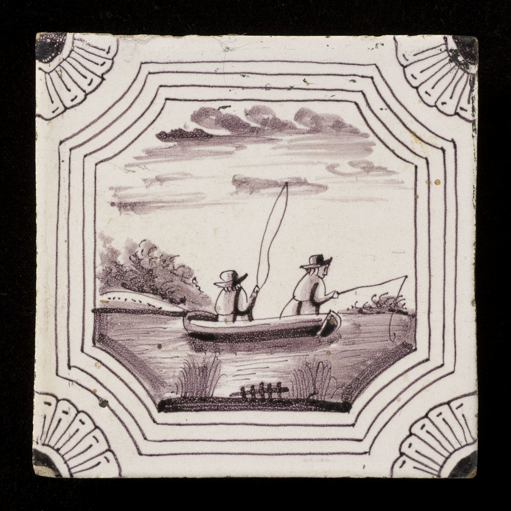 Tegel van keramiek met tinglazuur, voorstellende: wa...