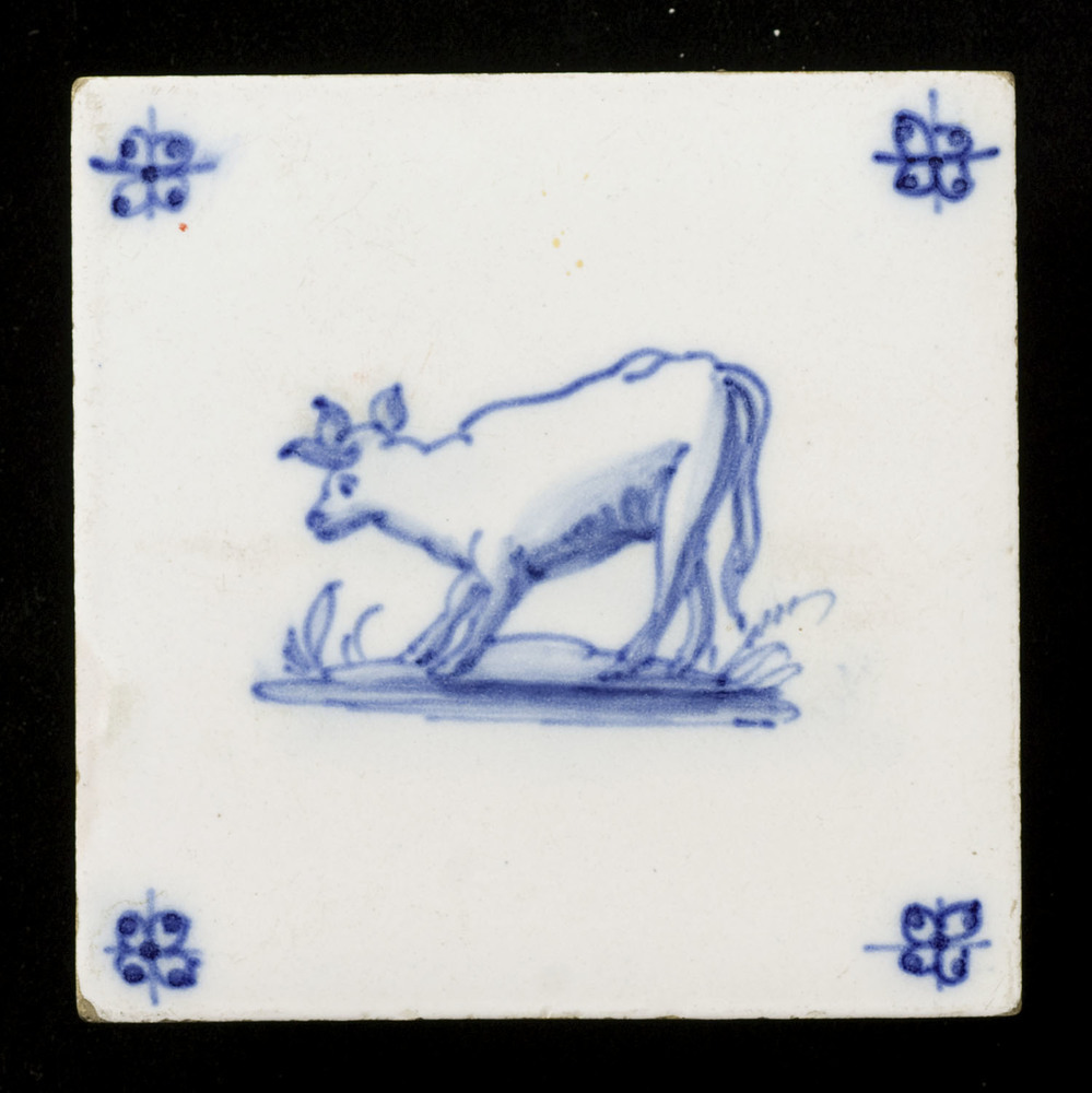 tegel van aardewerk met tinglazuur, voorstellende: l...