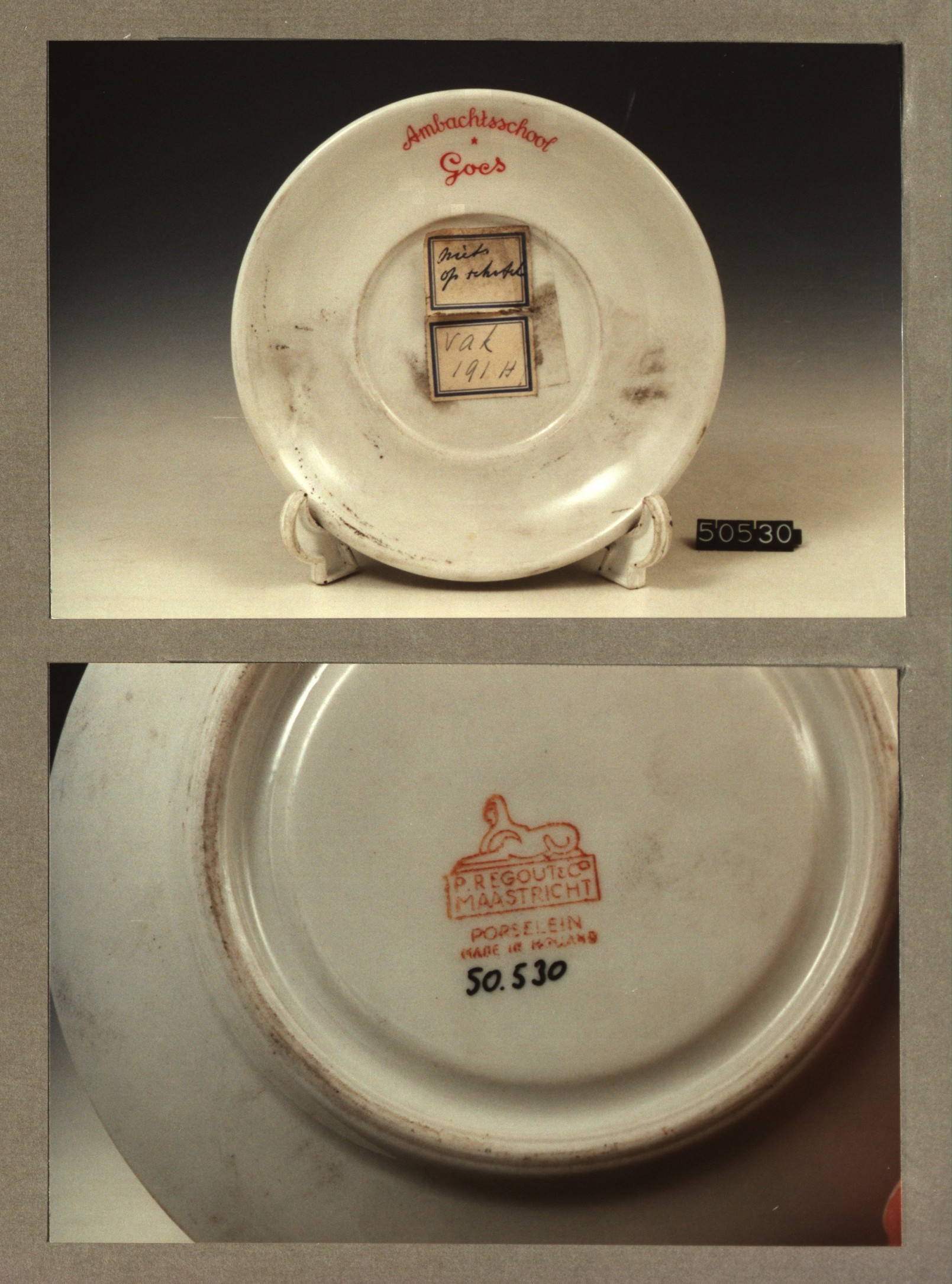 Schotel - plat, model I met decor Ambachtsschool Goes