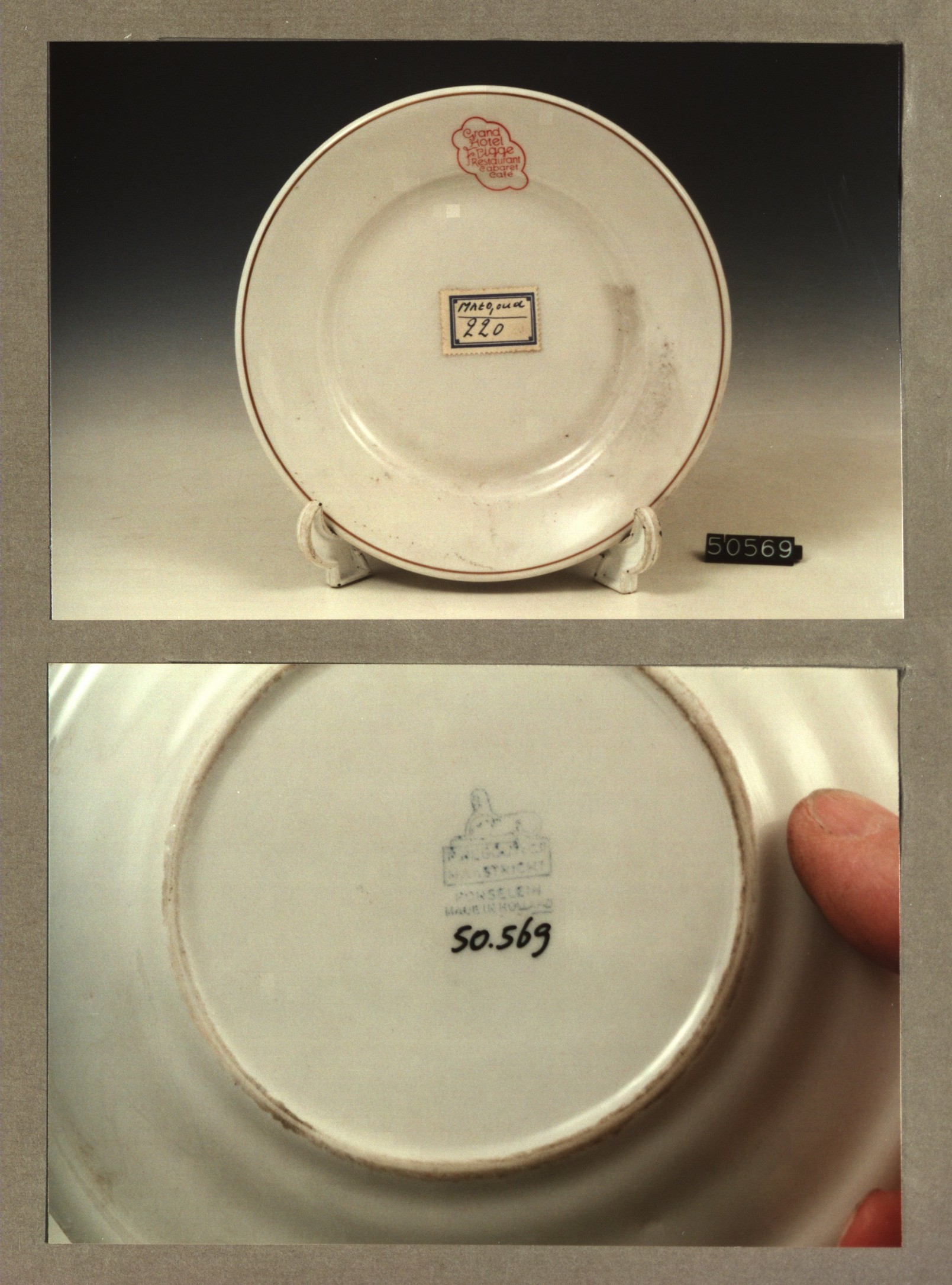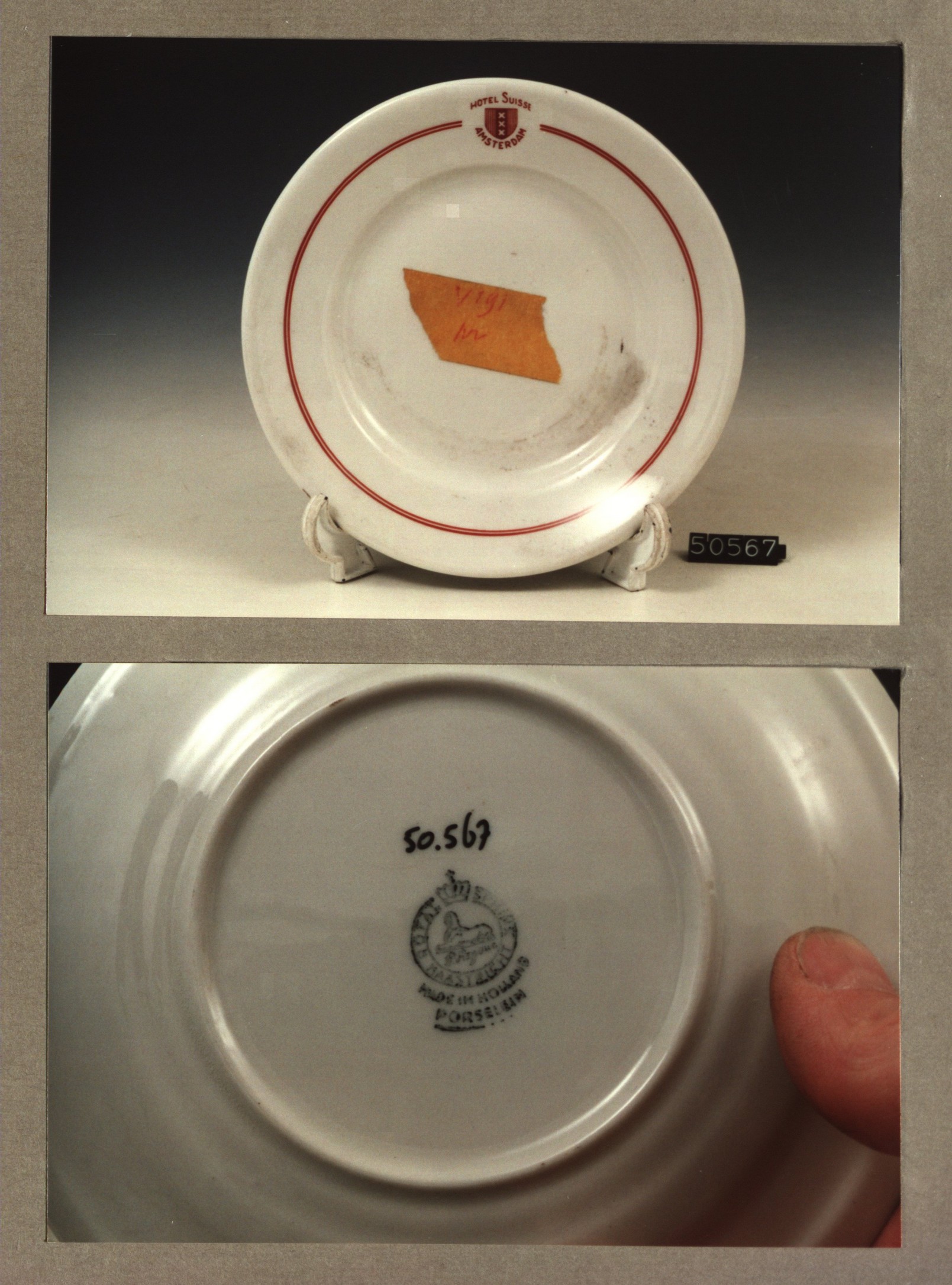 Plat bord, model P met decor Hotel Suisse Amsterdam