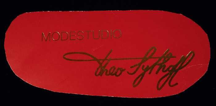 Kartonnen bord met "Modestudio Theo Sijthoff"