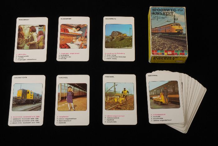 PTT kwartetspel in oranje doos met groen-witte figuur