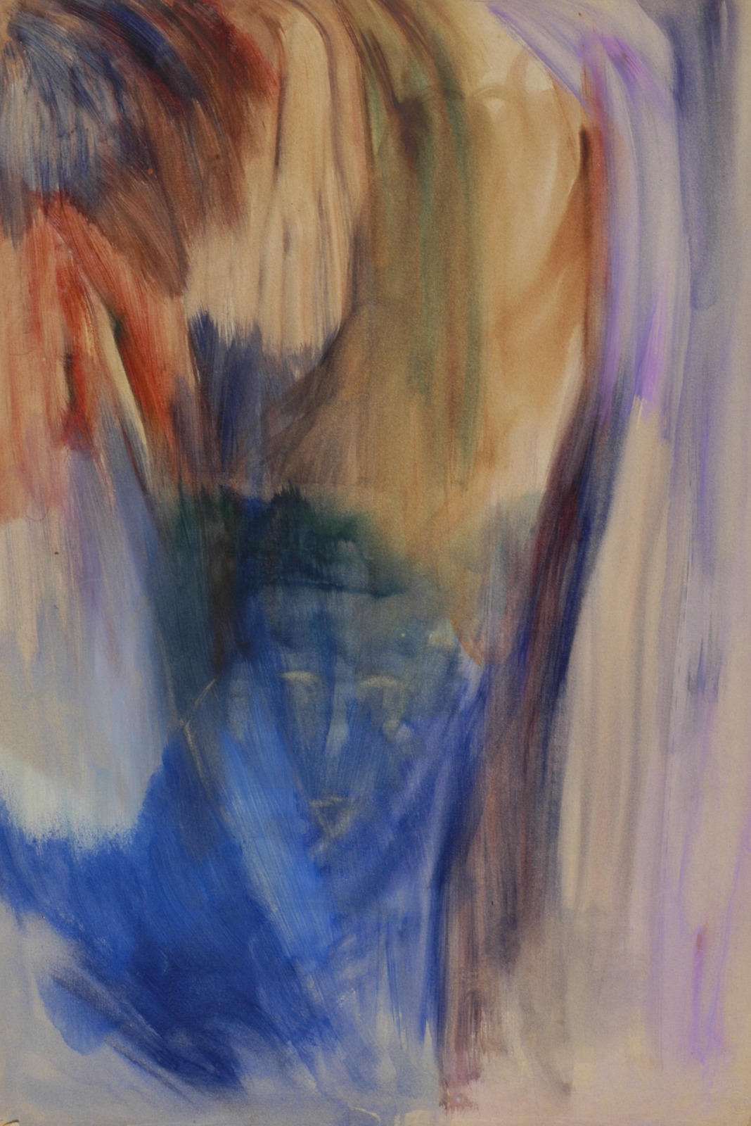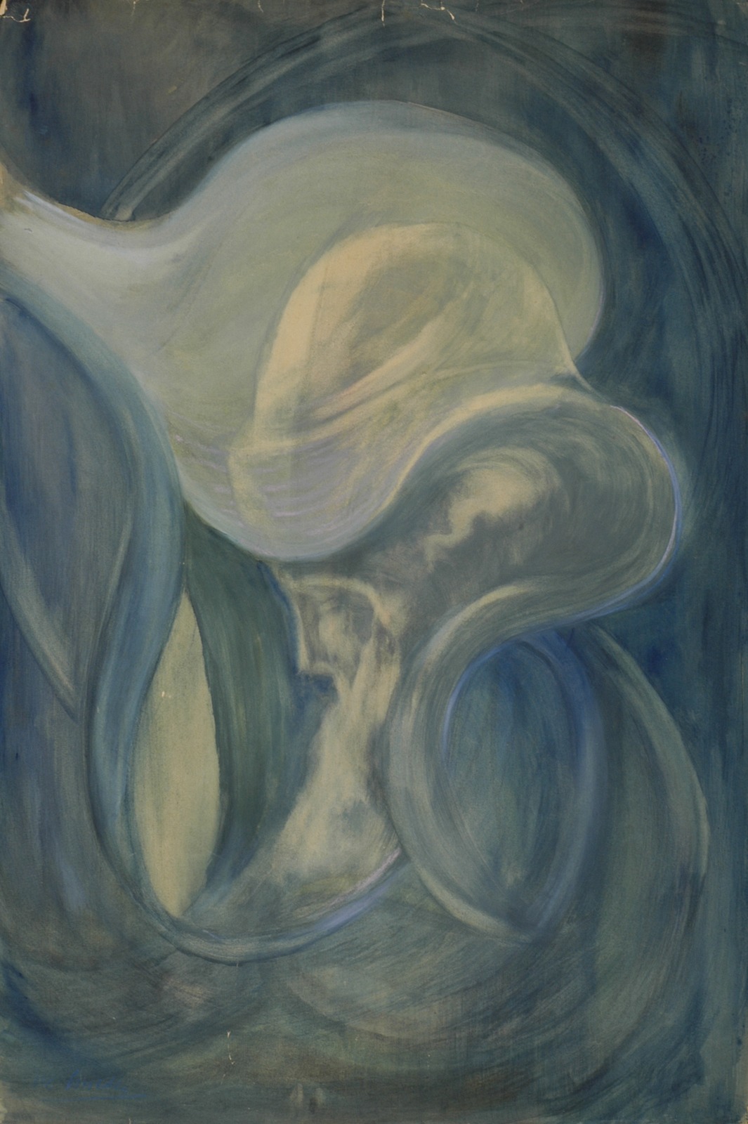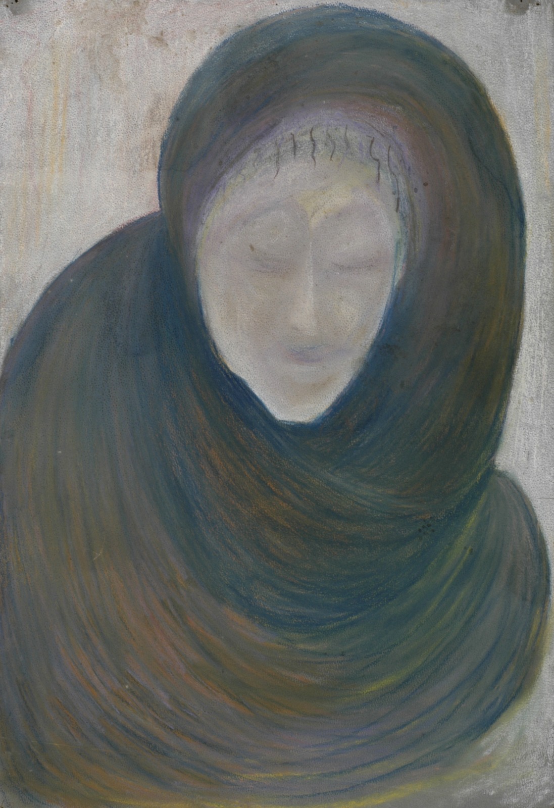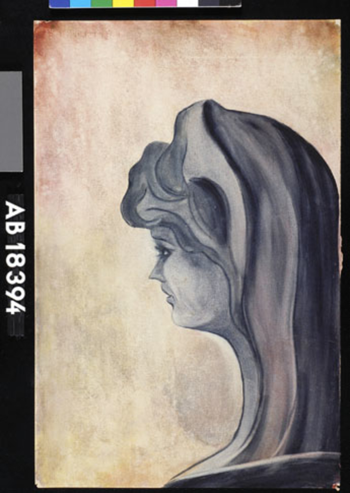 Portret in tinten pruisisch blauw (Quebus/ Japan?)