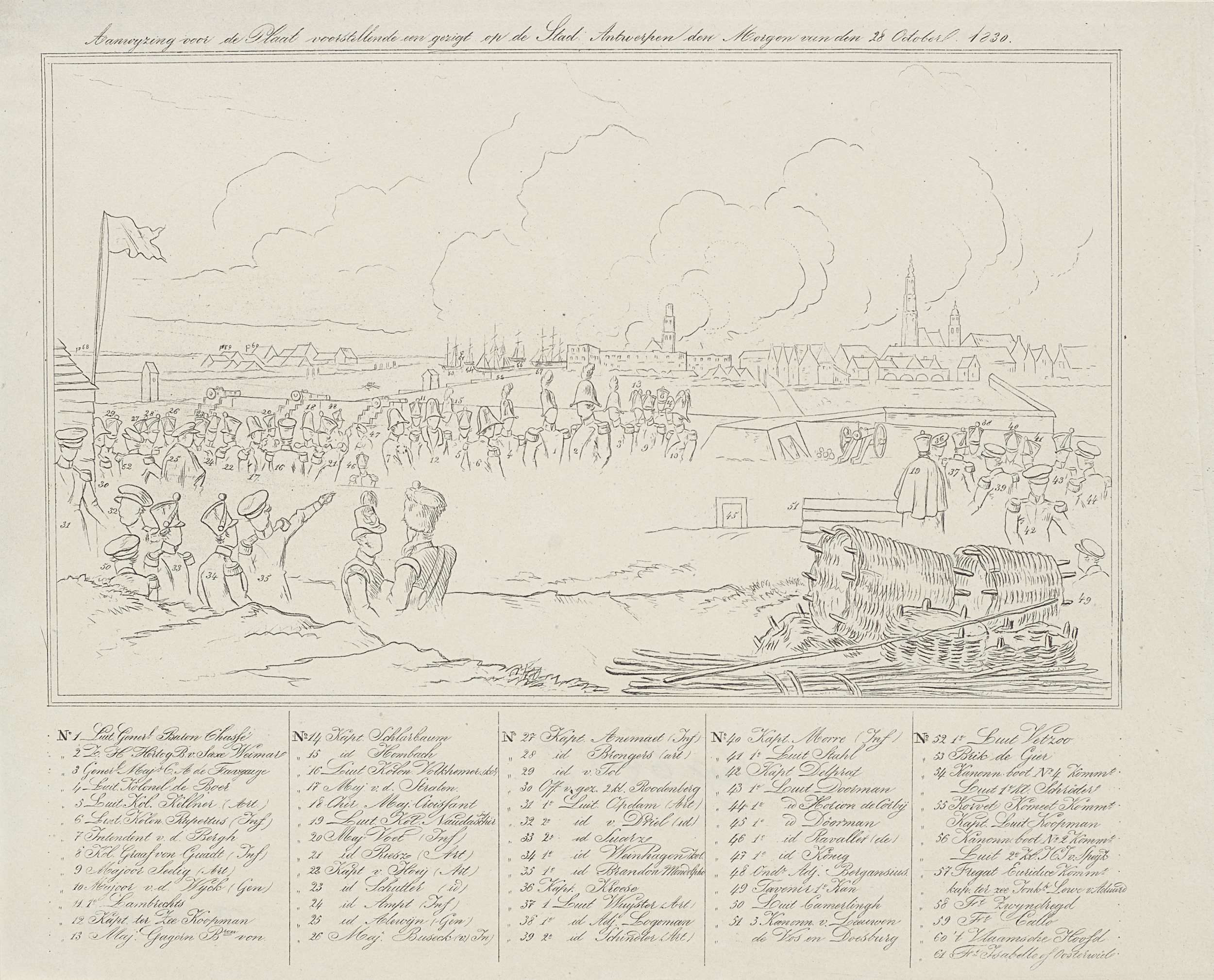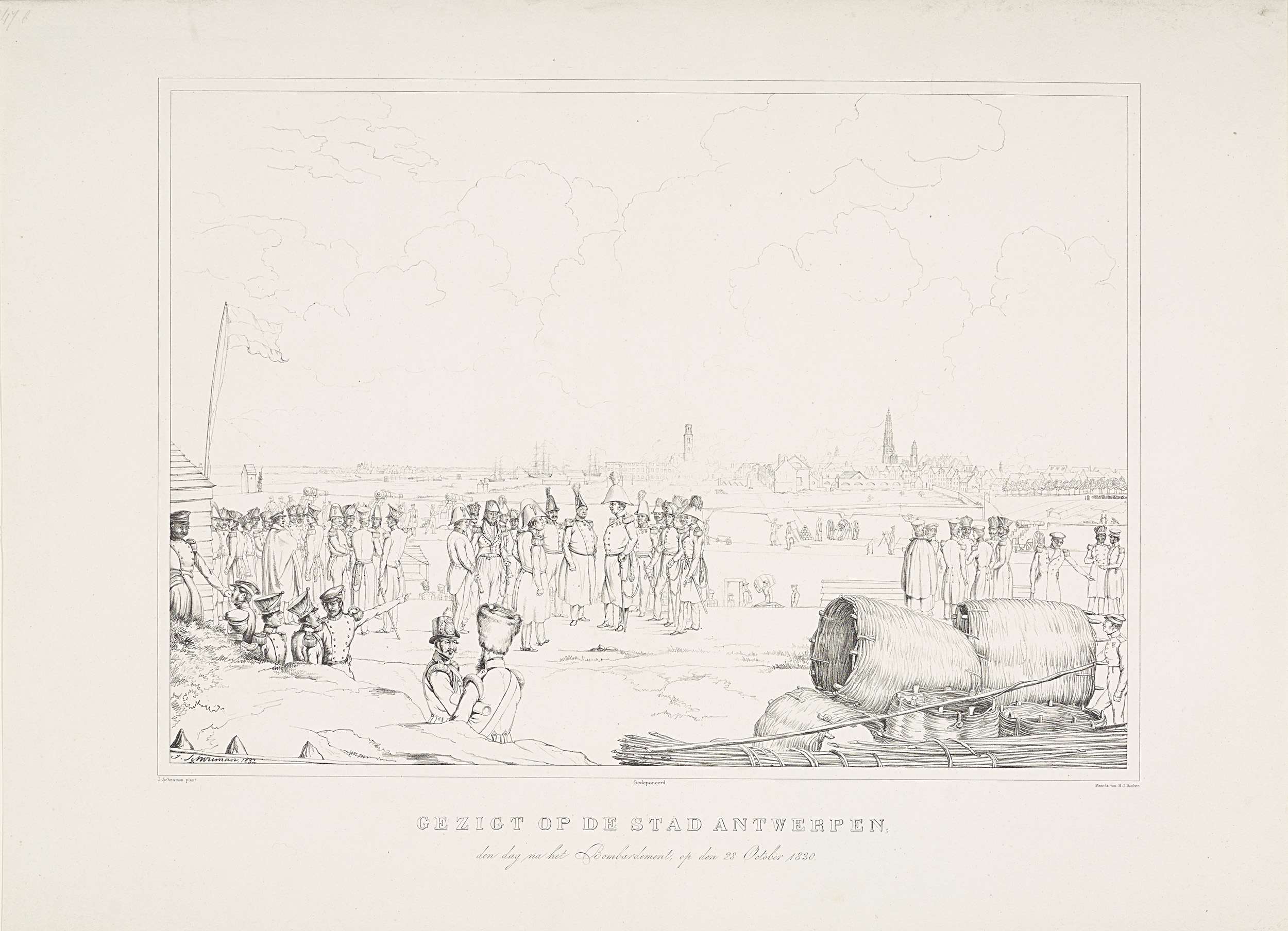 Gezigt op de stad Antwerpen, den dag na het Bombarde...