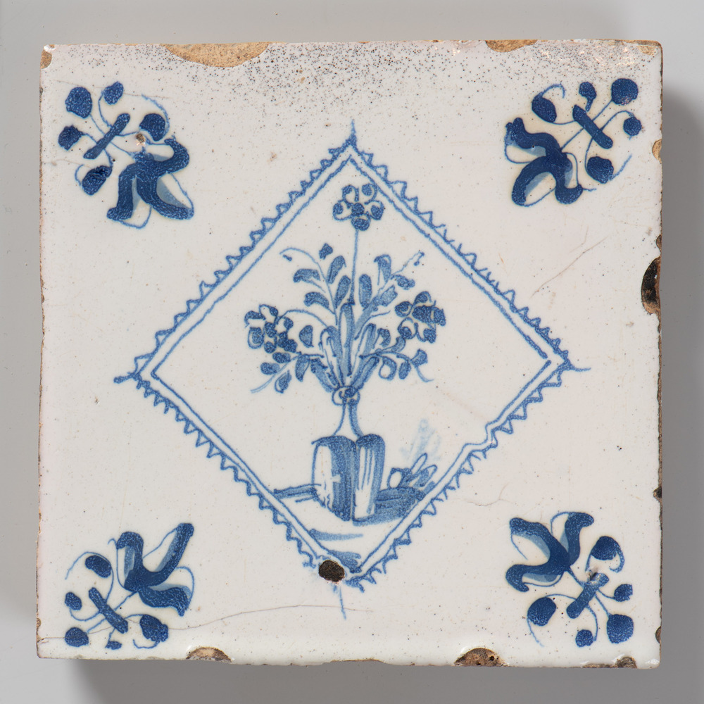 tegel van keramiek met tinglazuur, voorstellende: bl...
