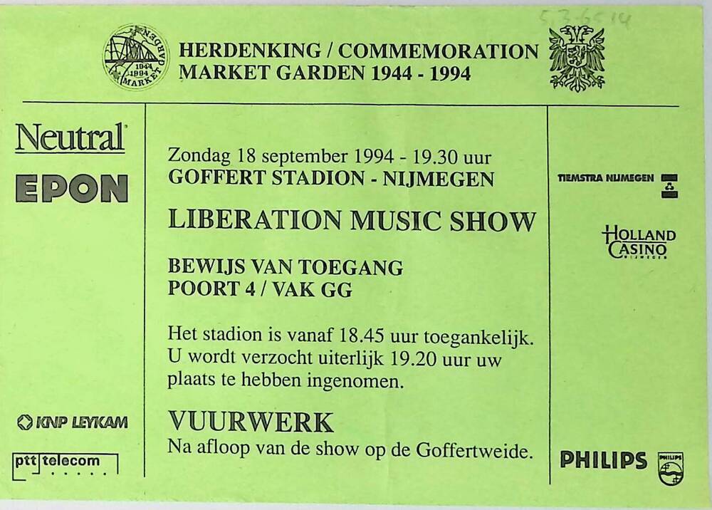 toegangskaart Liberation Music Show, Goffertstadion,...