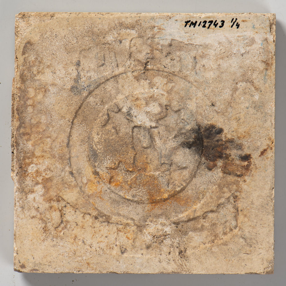 tegel van aardewerk met tinglazuur, voorstellende: l...