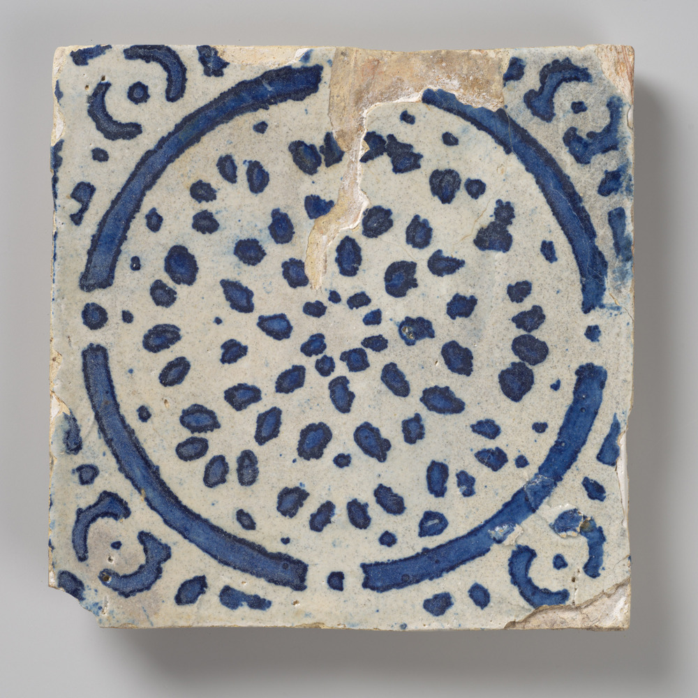 tegel van aardewerk met tinglazuur, voorstellende: h...