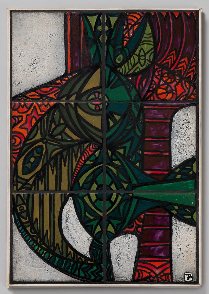 tegeltableau van keramiek in reliëf, met een abstrac...