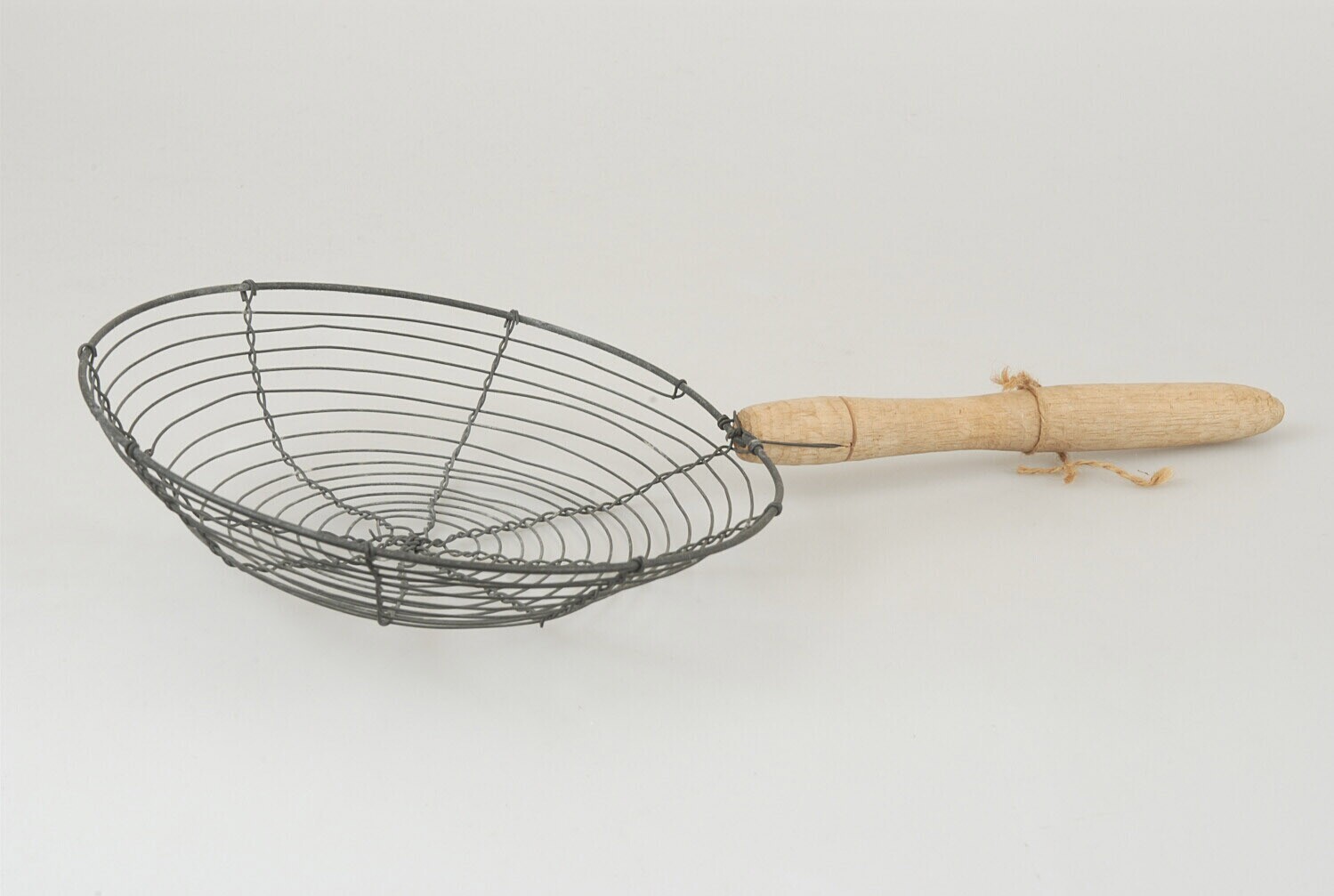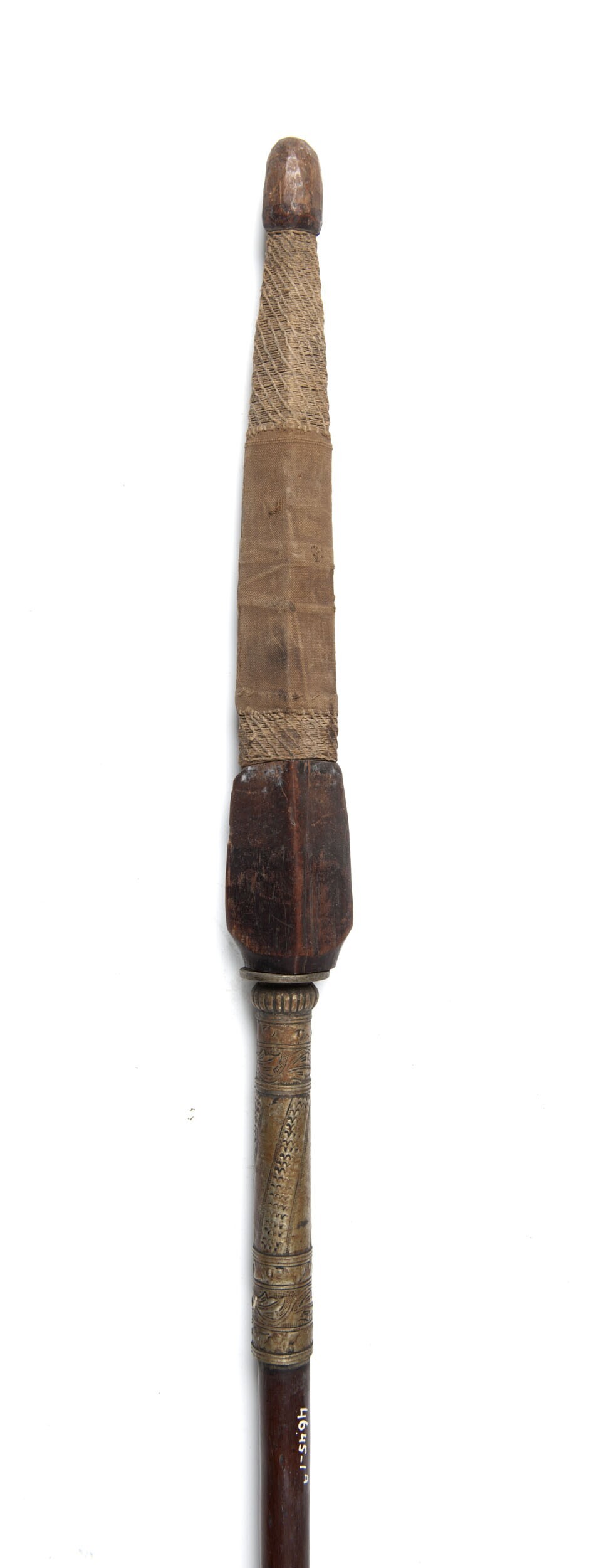 Houten speer met lancetvormige ijzeren punt en bijbe...