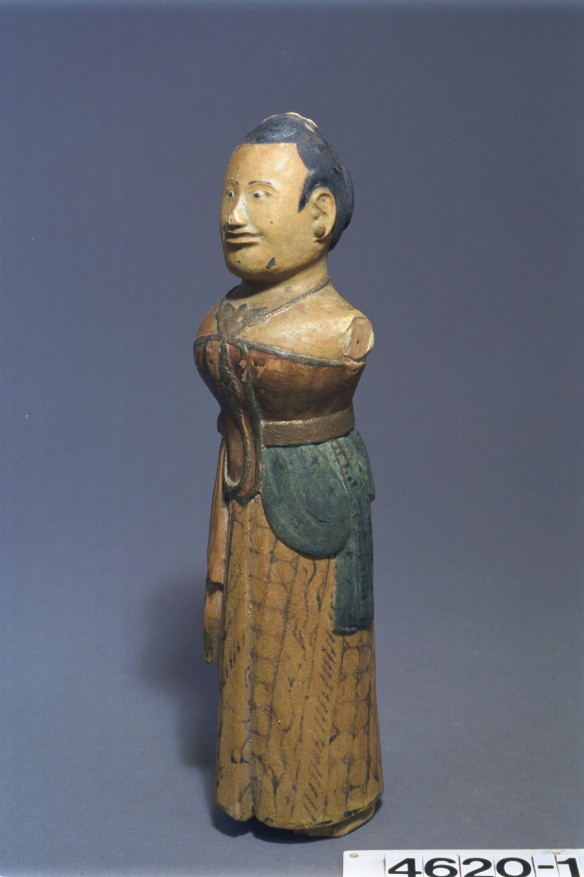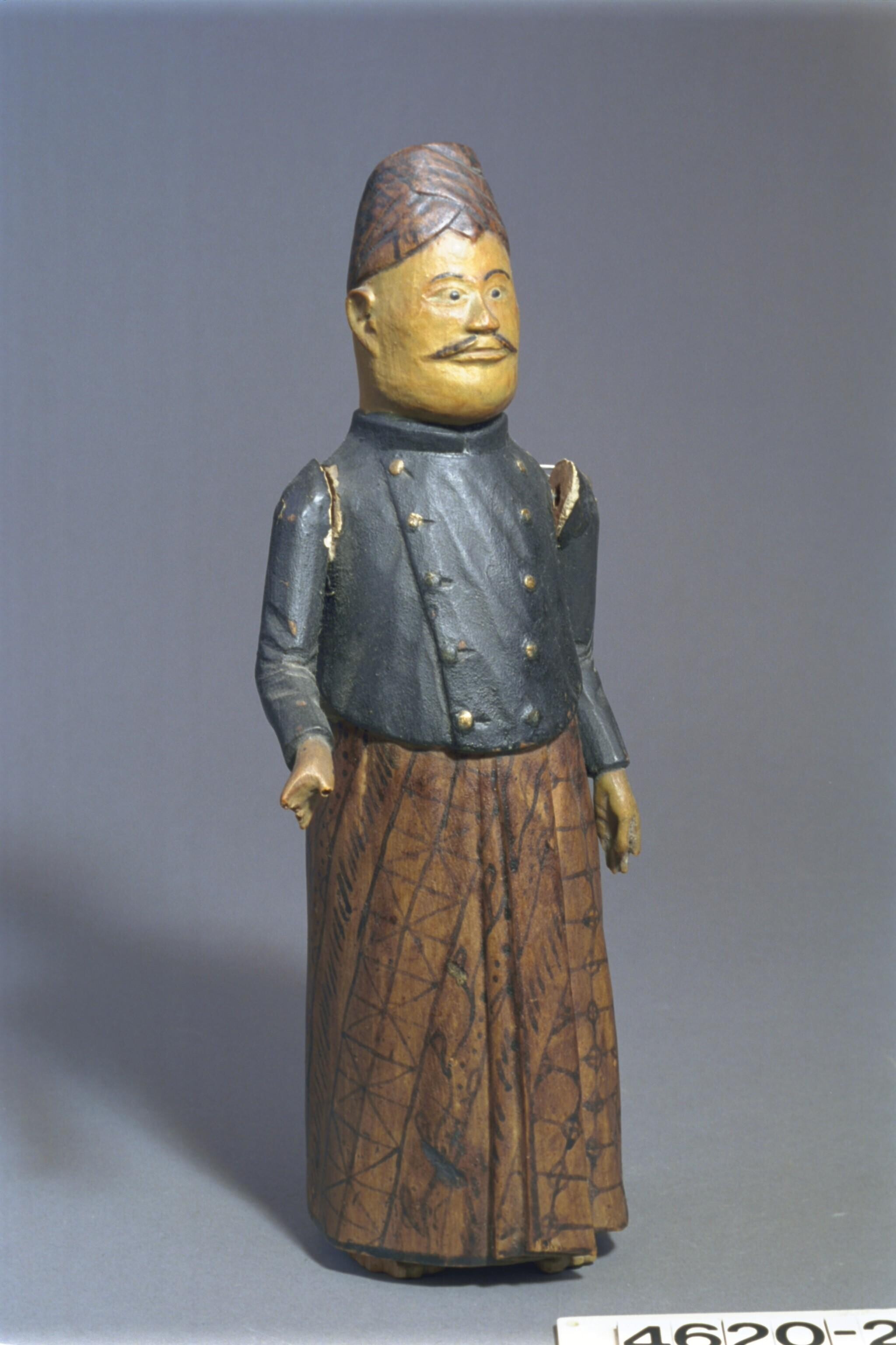 Gesnlen en beschilderd houten pop in de vorm van een...