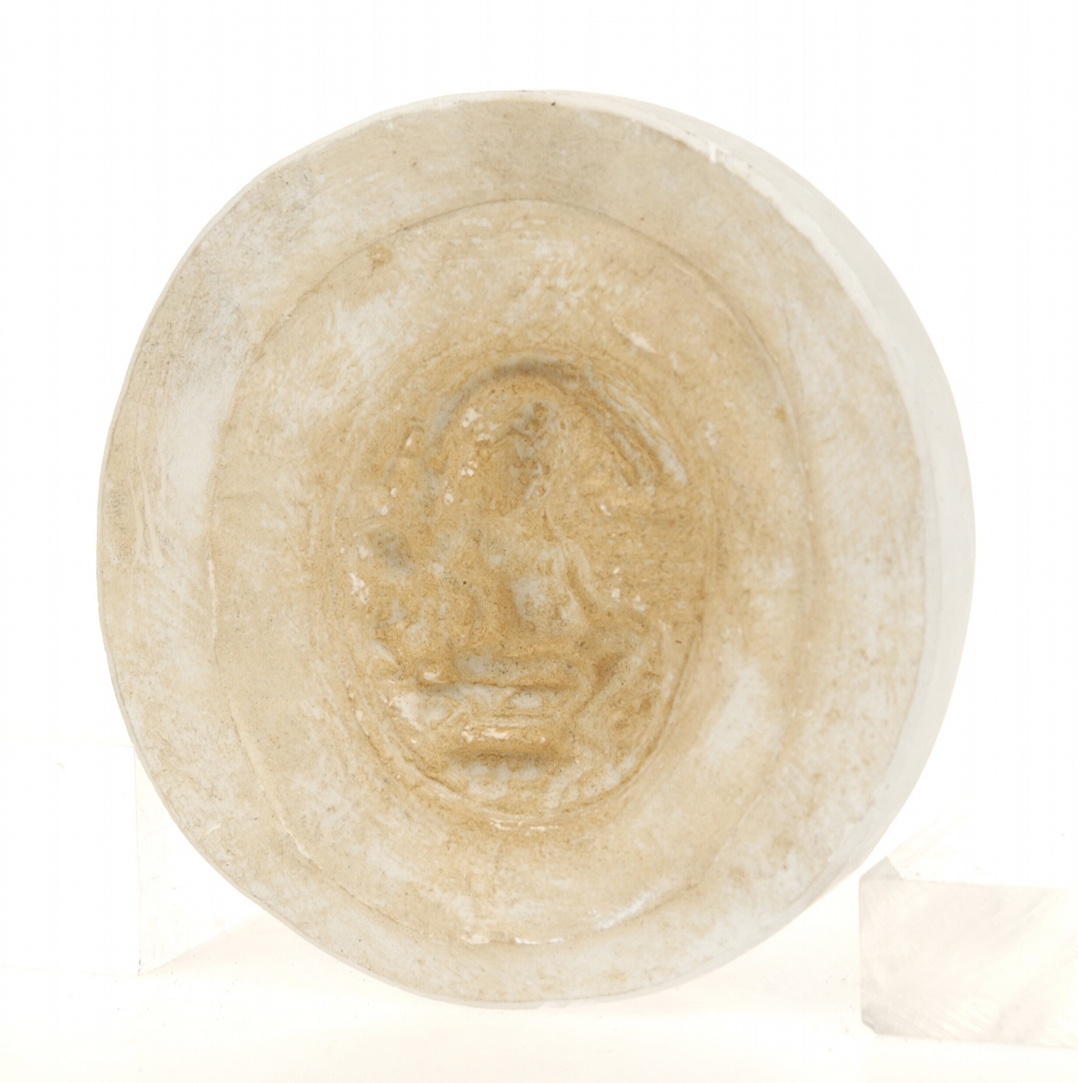 Gipsafgietsel votieftablet met twee armige figuur