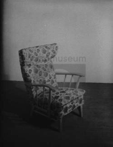 hoge blanke fauteuil met open armleggers