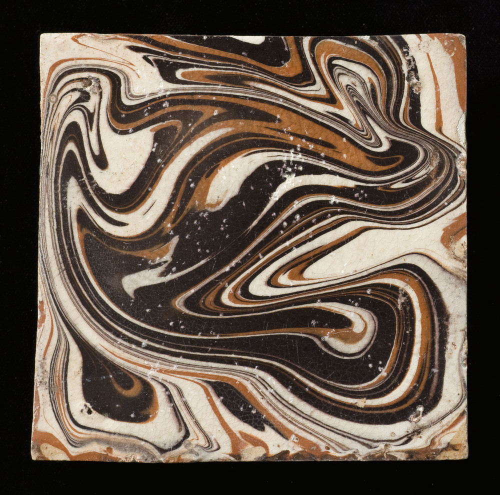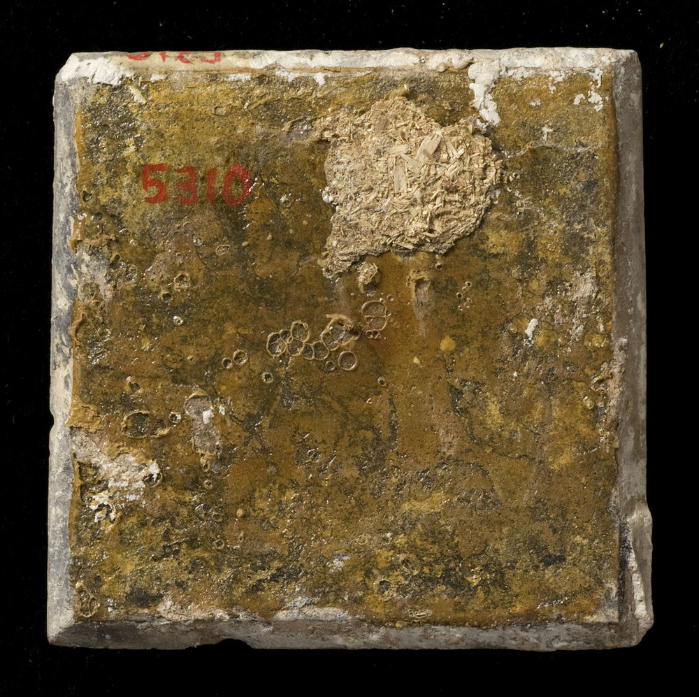 Tegel van keramiek, tinglazuur, gesprenkeld, voorste...