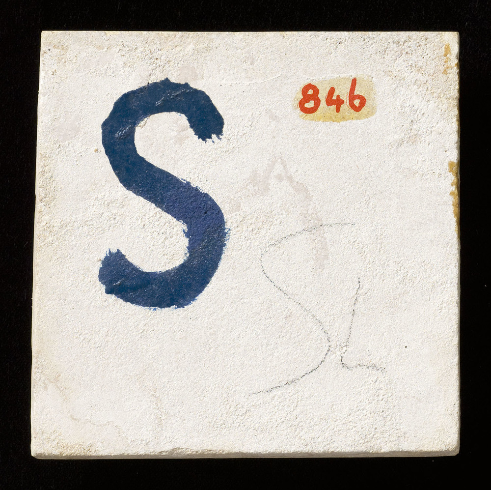 tegel van aardewerk met tinglazuur, voorstellende: r...