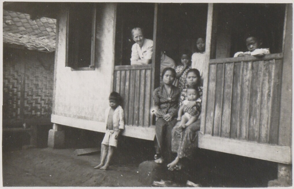 Portret van drie vrouwen envier kinderen op de veranda