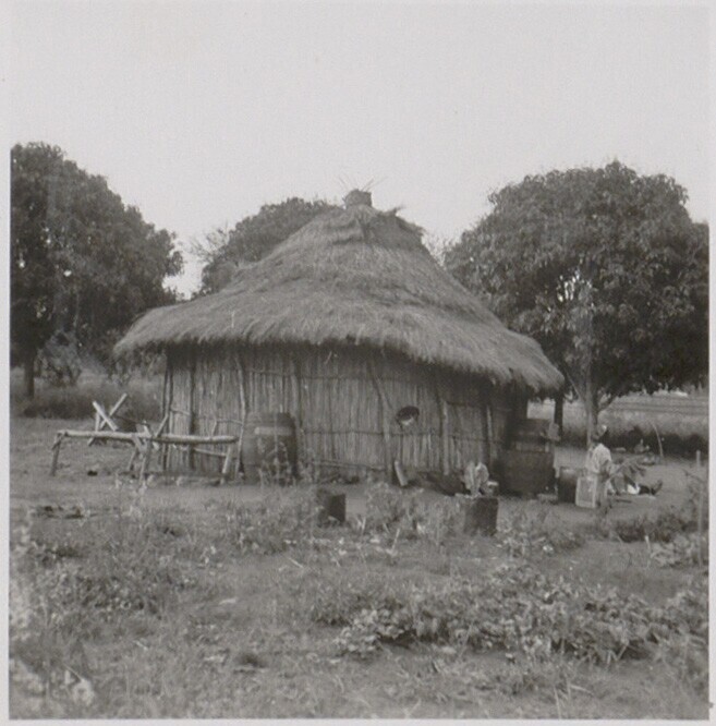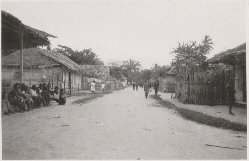 Dorpsgezicht met huizen van bamboe