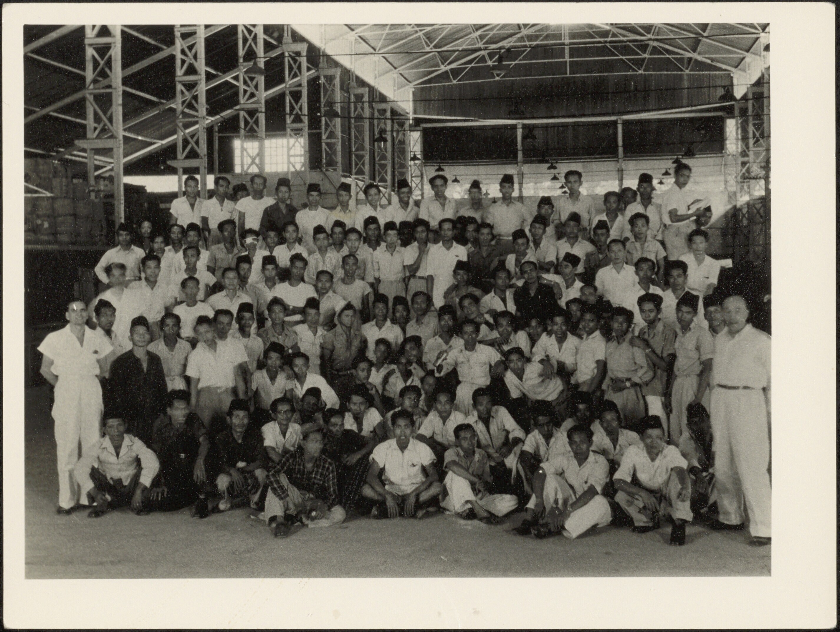 Groepsportret, vermoedelijk van personeel in een loods