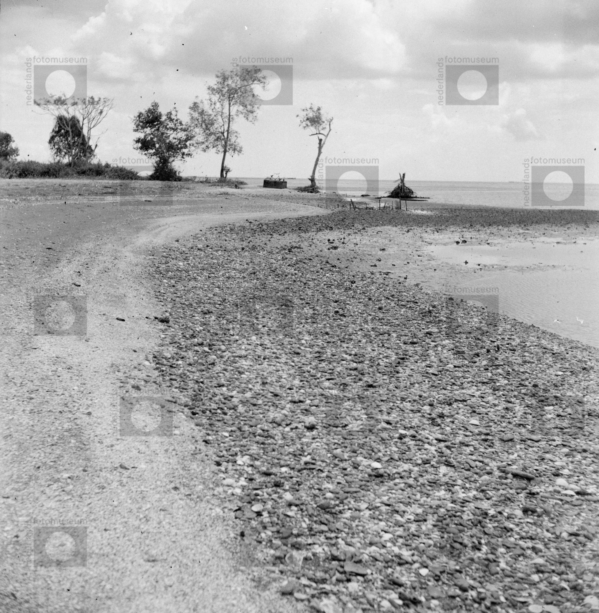 Een kiezelstrand, bezocht tijdens Rode Kruis-expedit...