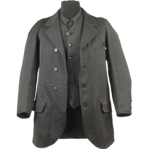 Kostuum: Jas, vest, frontje, klapbroek, pet