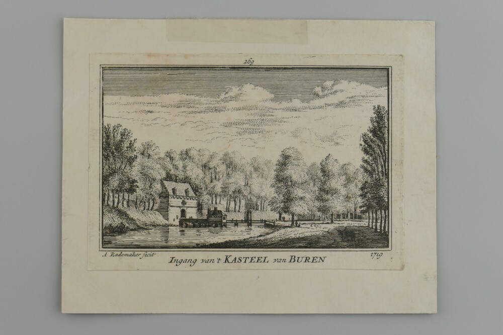 Gravure voorstellende Ingang van 't Kasteel van Bure...