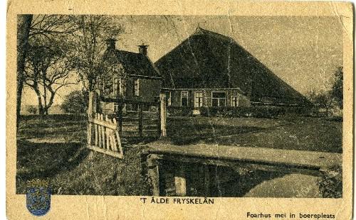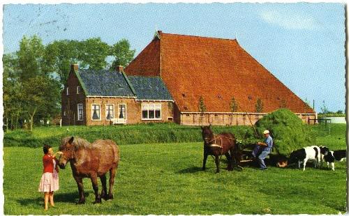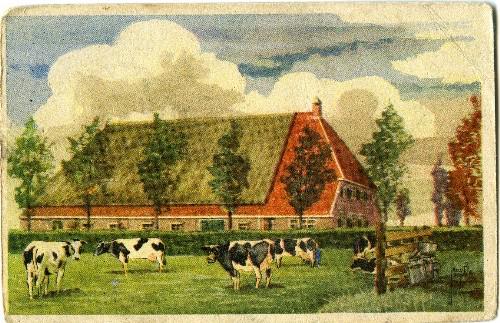 prentbriefkaart in kleur van een stelpboerderij met ...