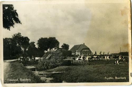 prentbriefkaart in kleur van de boerderij van J.A. W...