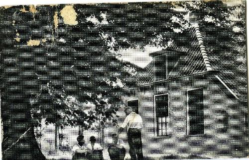 Prentbriefkaart in zwart-wit van de kampeerboerderij...