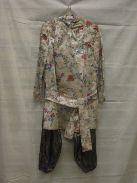 Ensemble, bestaande uit jasje van goudkleurig satijn...
