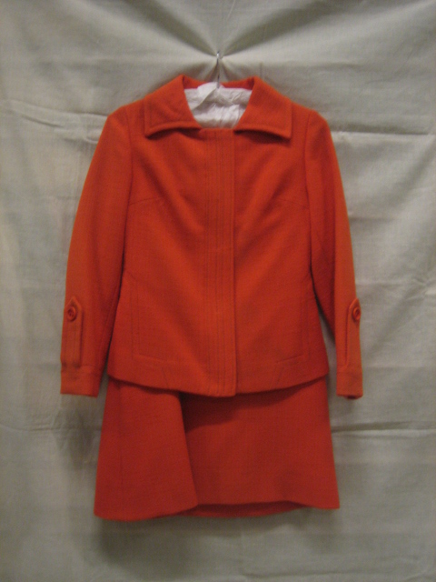 Mantelpak, van oranje wol in linnenbinding met ingew...