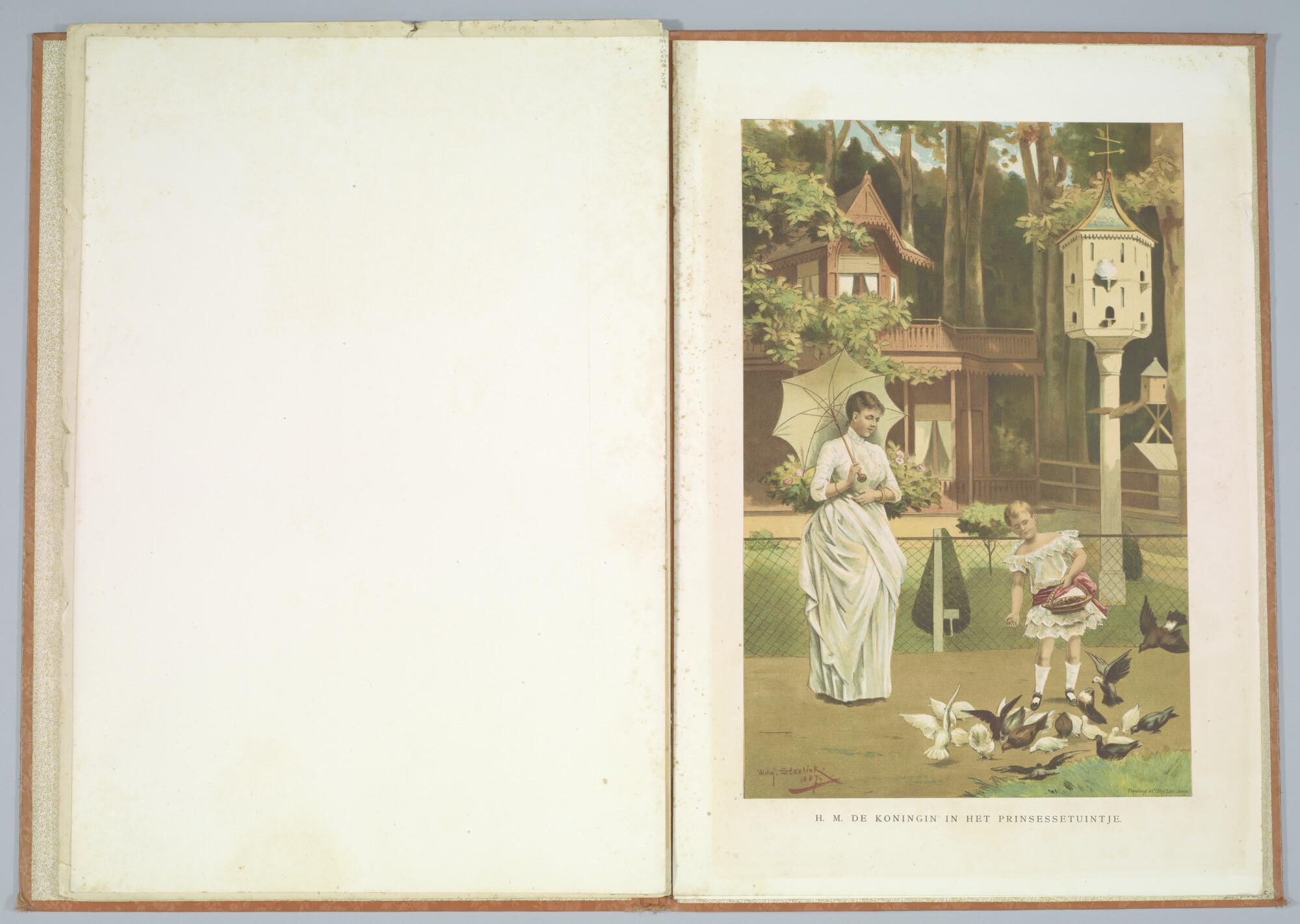 Lithografie H.M. de Koningin in het Prinsessetuintje