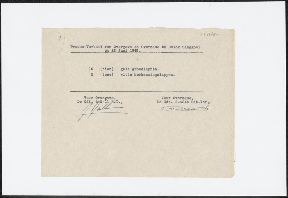 Getypte lijst Proces verbaal van overgave van materi...
