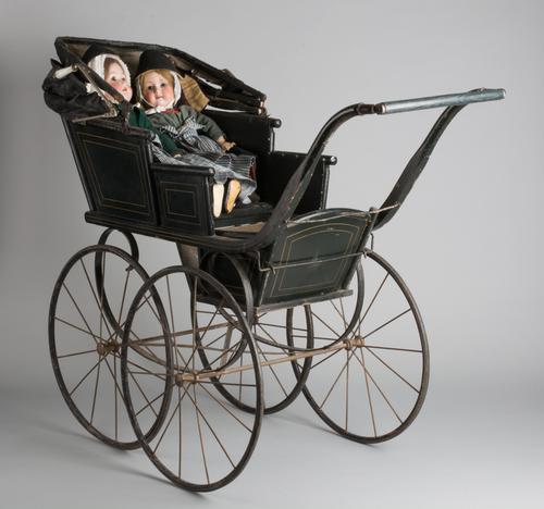 Poppenwagen met porseleinen handgrepen 19e eeuw