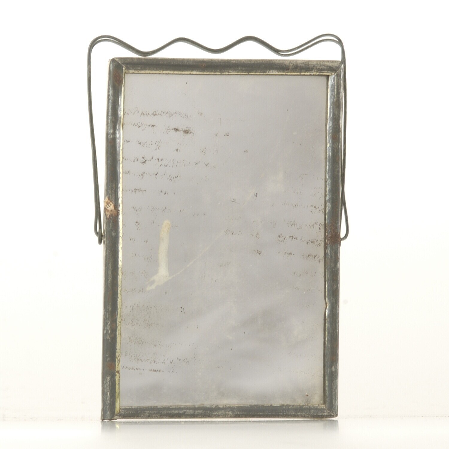 Spiegel van spiegelglas, blik, karton en ijzerdraad