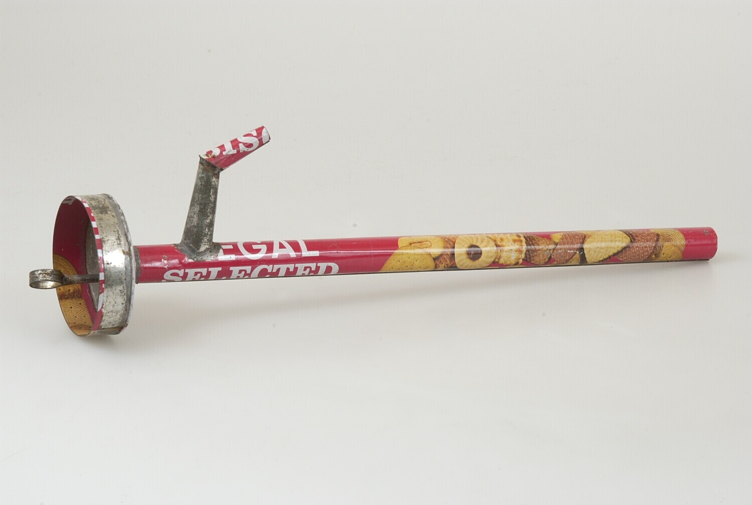 Blikken trechtertje, vervaardigd van een oud Droste ...