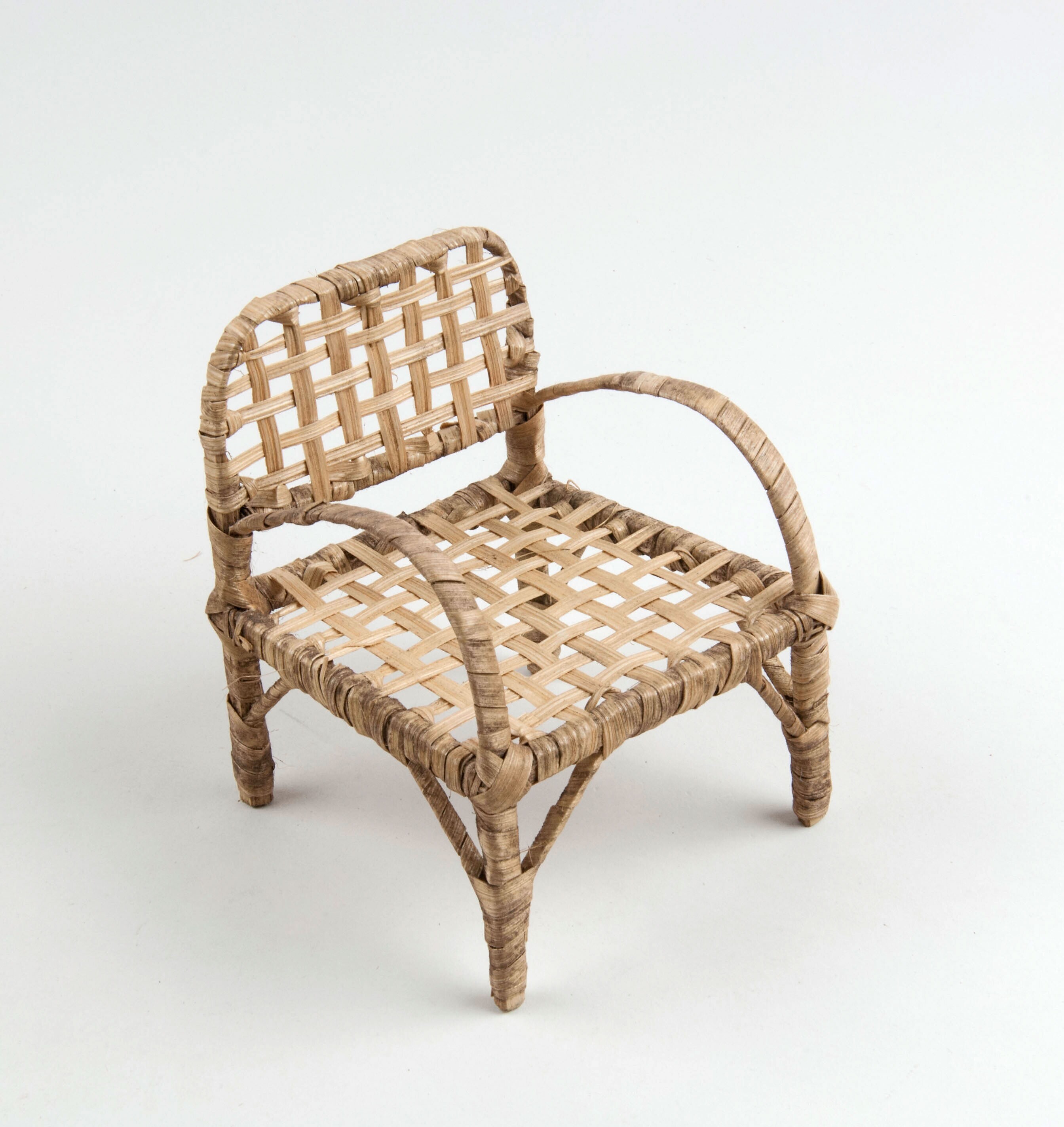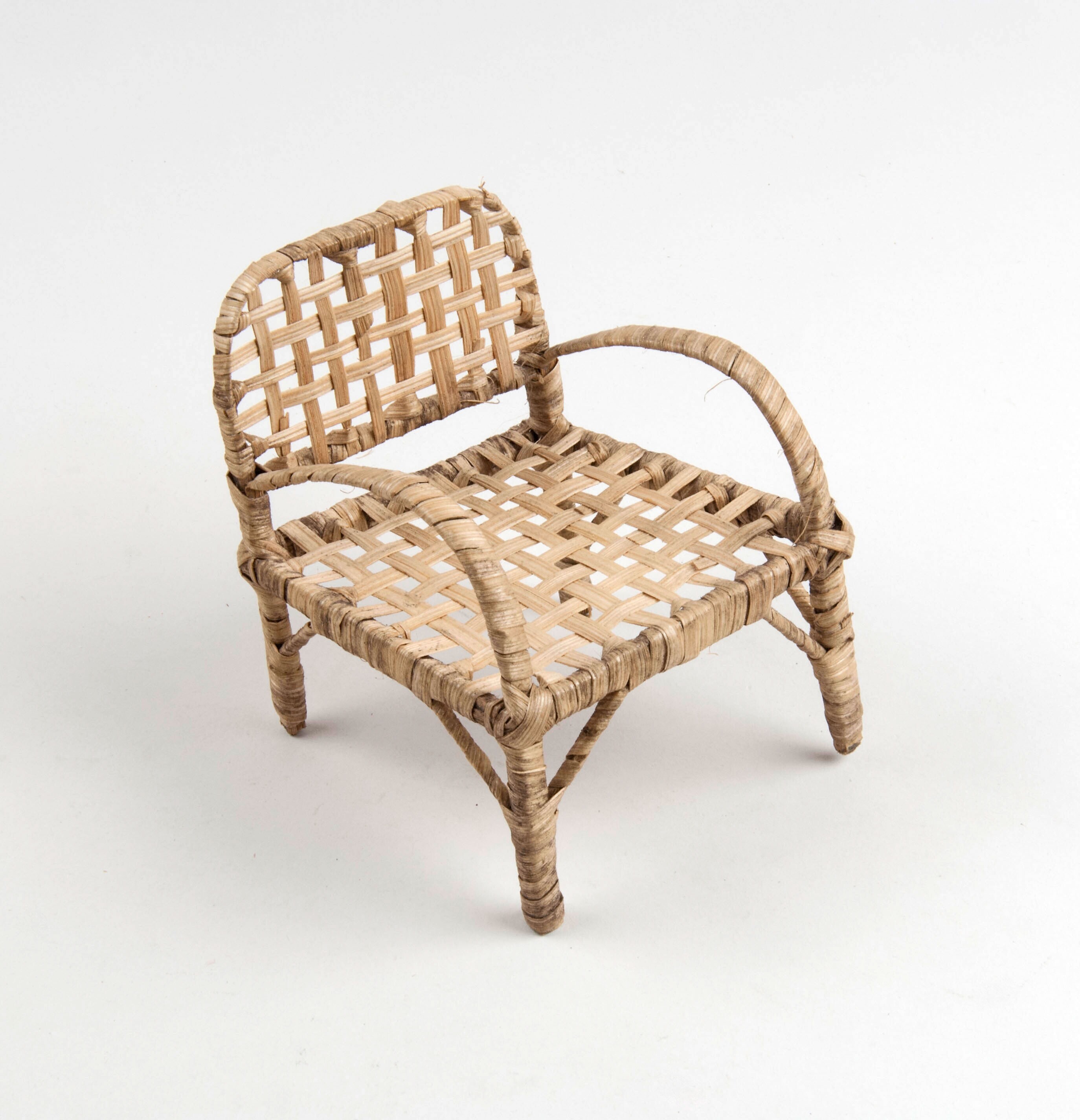 Miniatuur speelgoed stoeltje van gevlochten bamboerepen