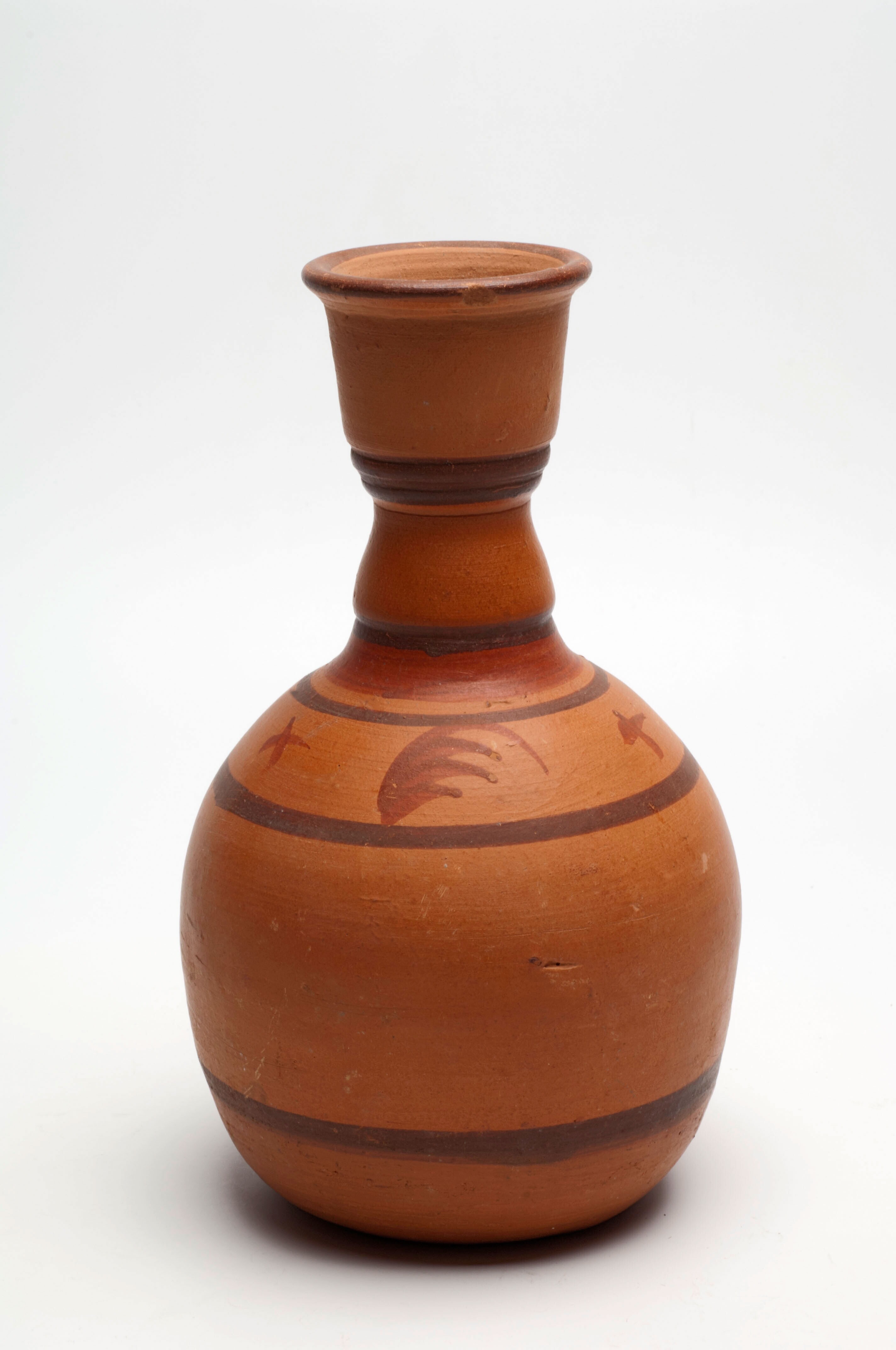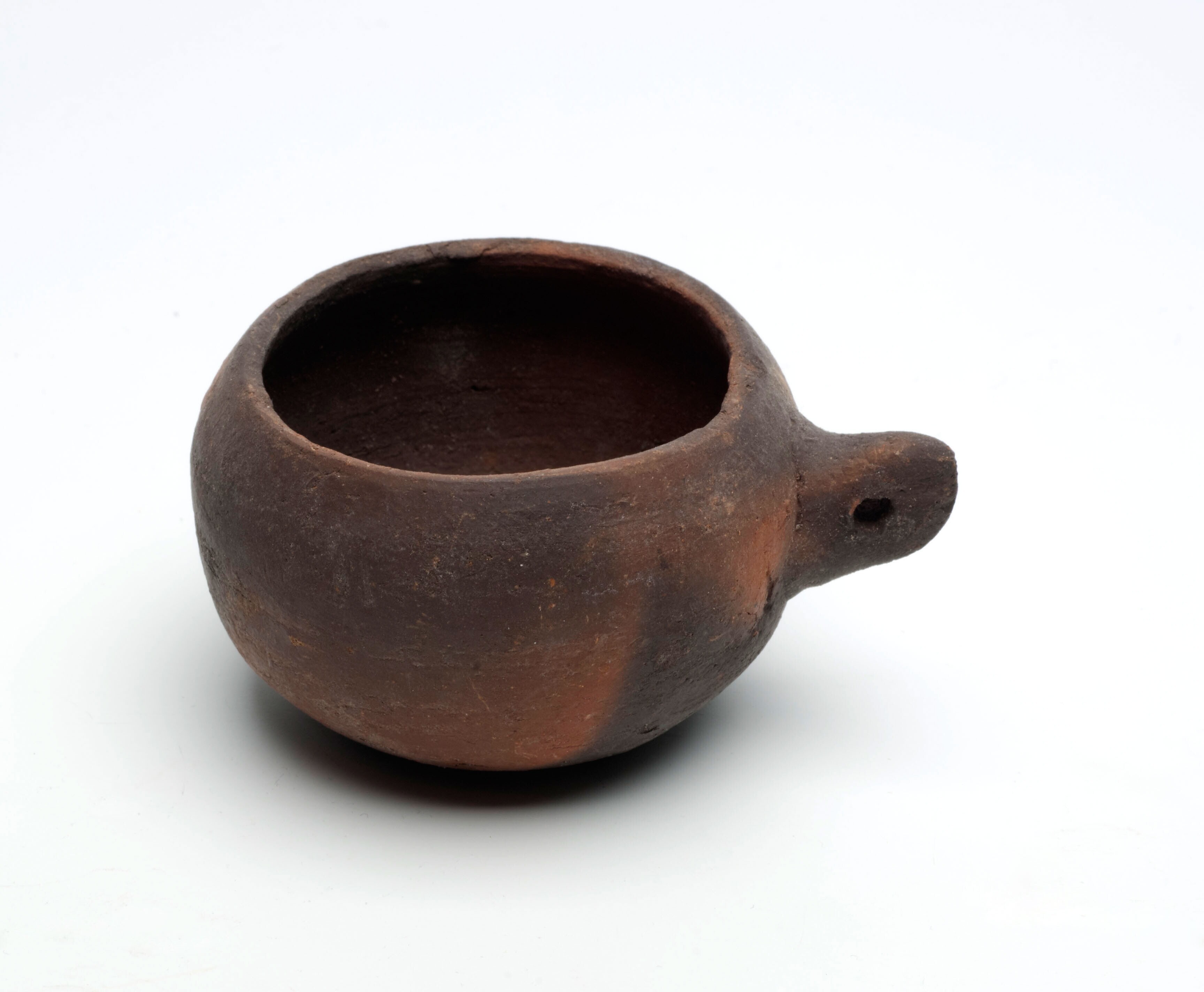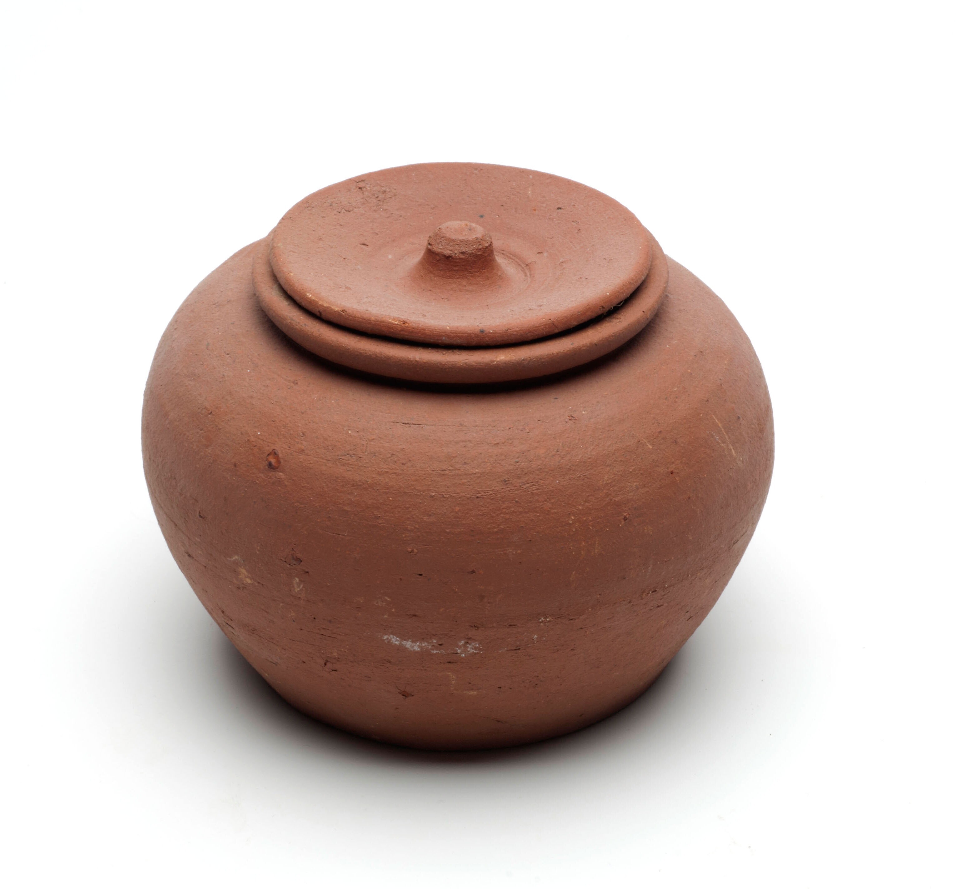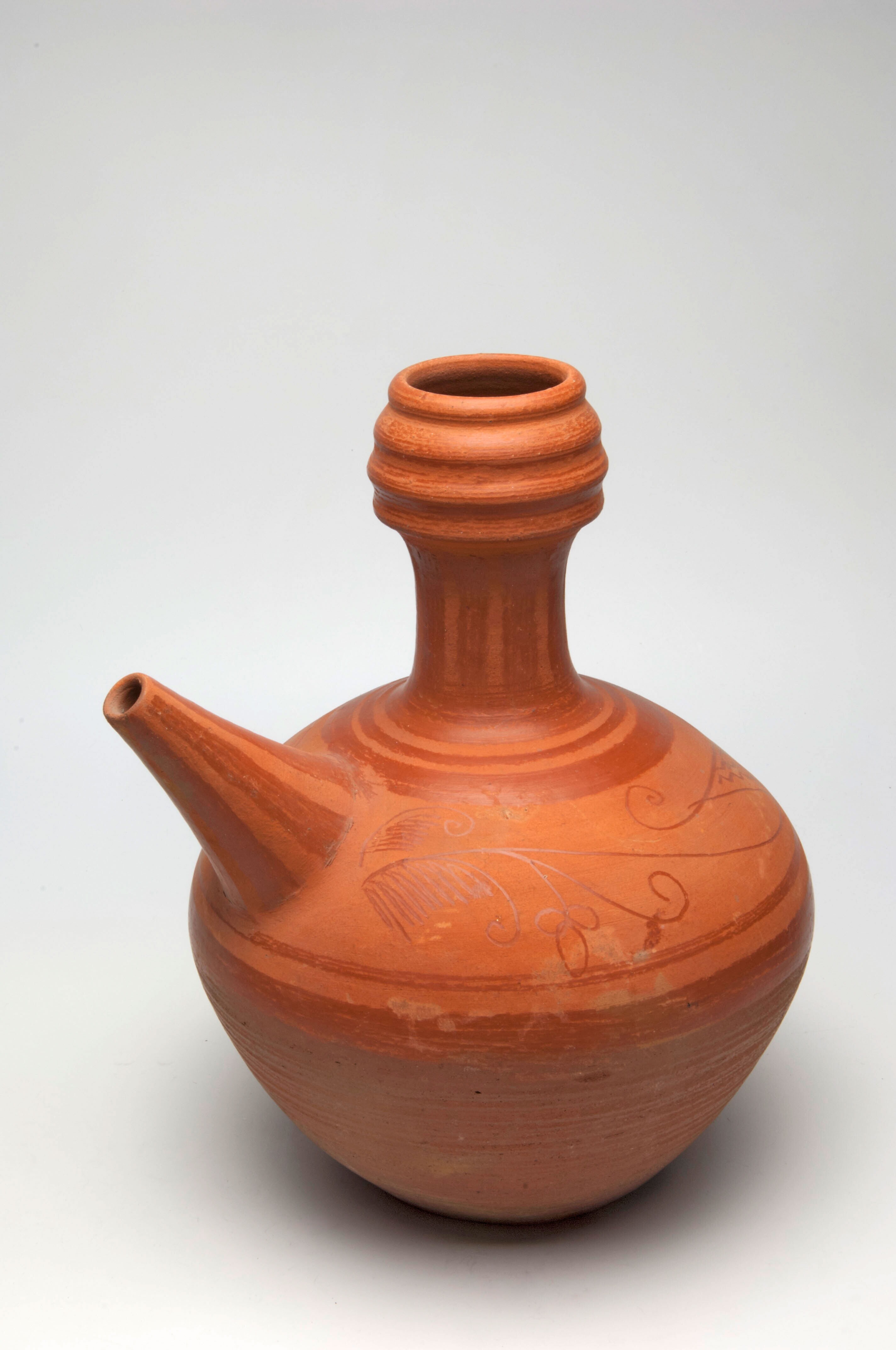 Beschilderde spaarpot van aardewerk in de vorm van e...