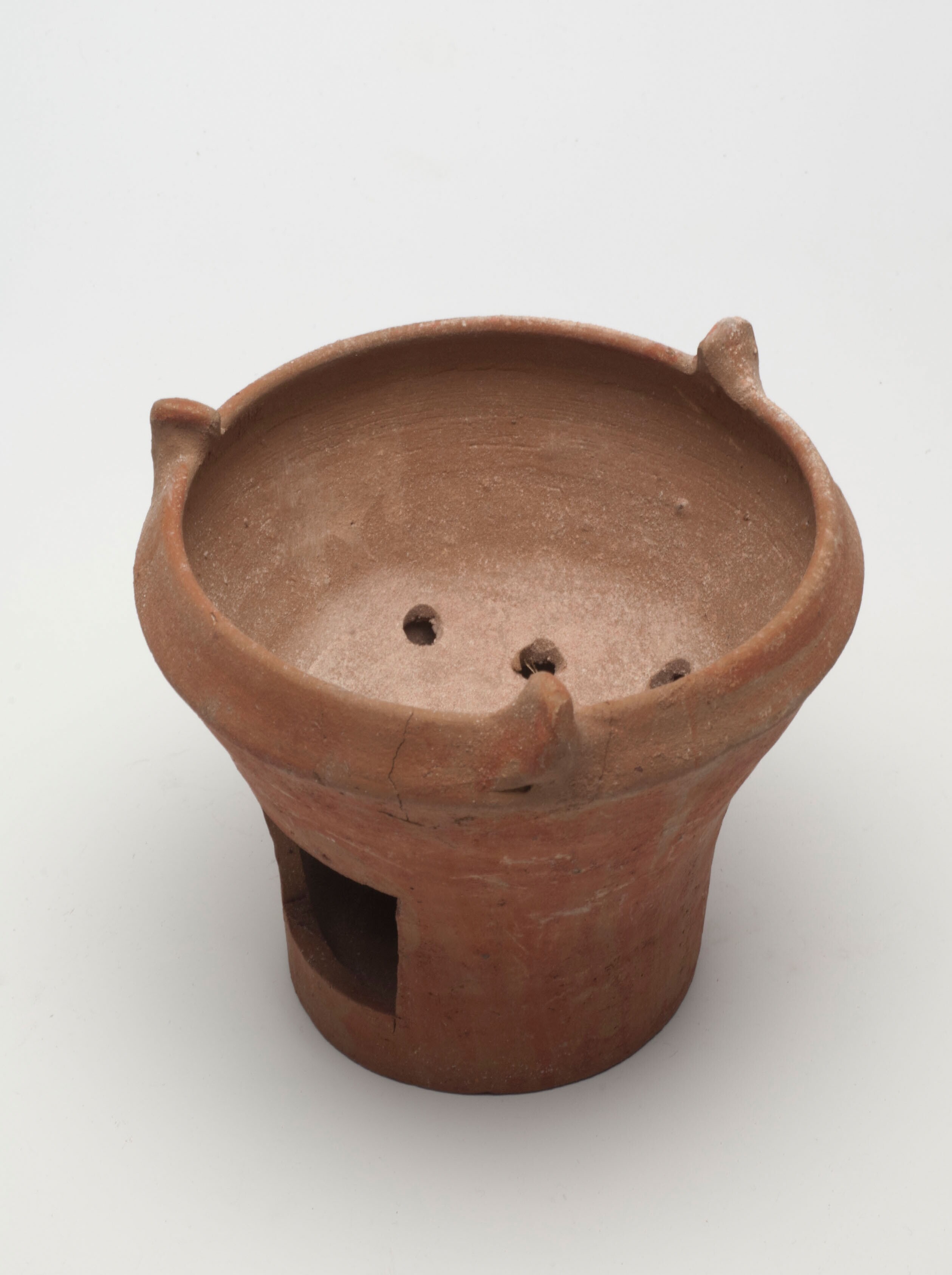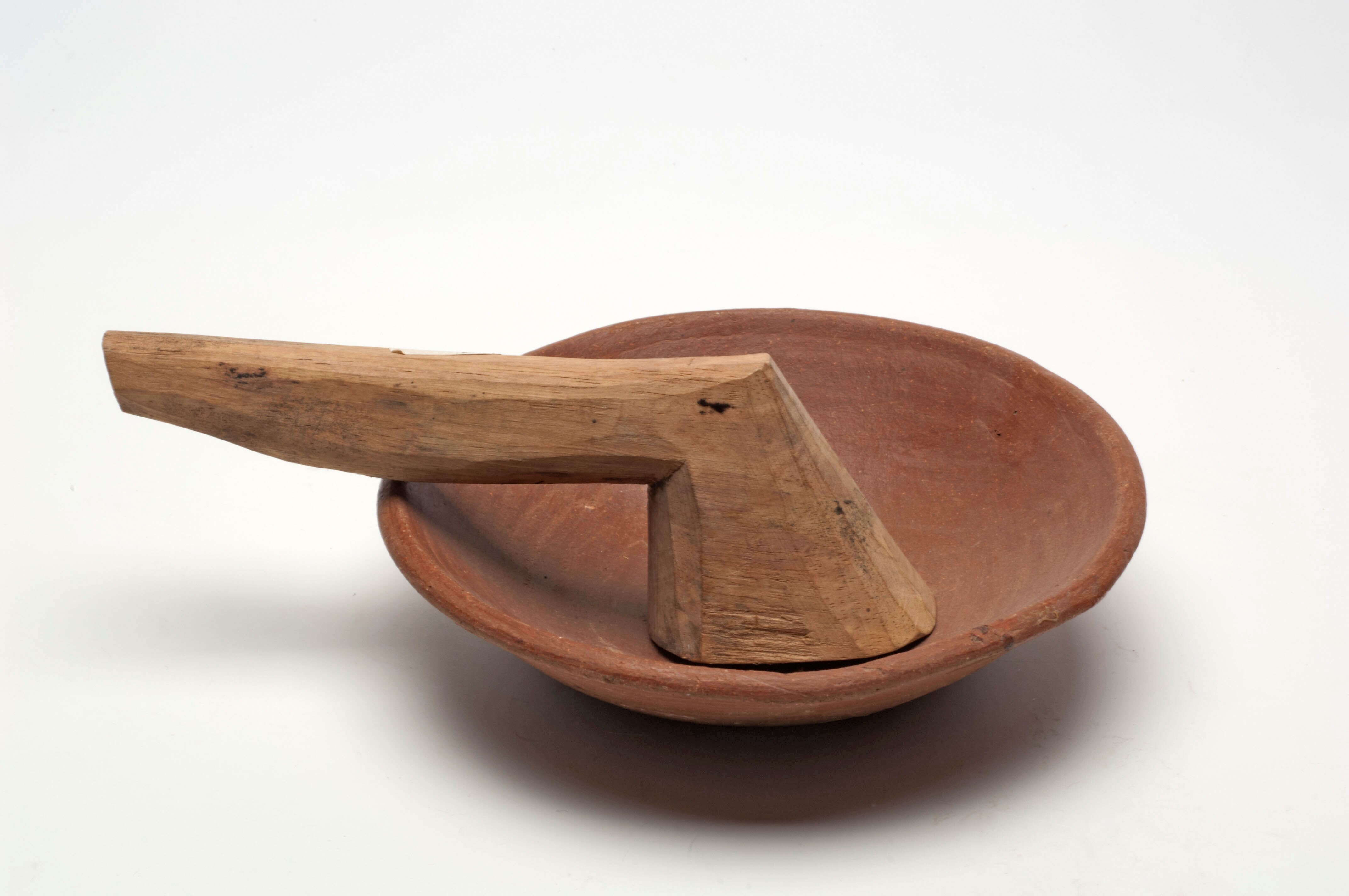 Aardewerken koekjesschaal met zeven kleine schaaltje...
